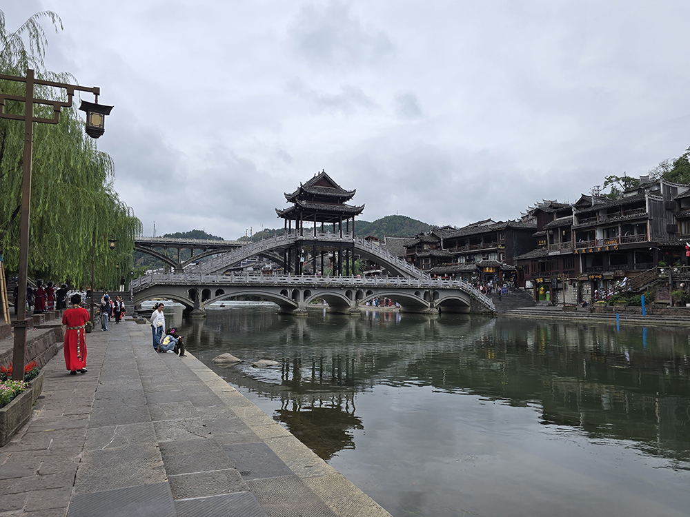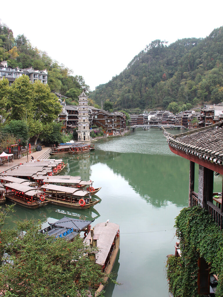 Alanguie le long de la paisible Tuojiang, la vieille ville sur pilotis de Fenghuang est particulièrement photogénique même quand le temps n’est pas ensoleillé…