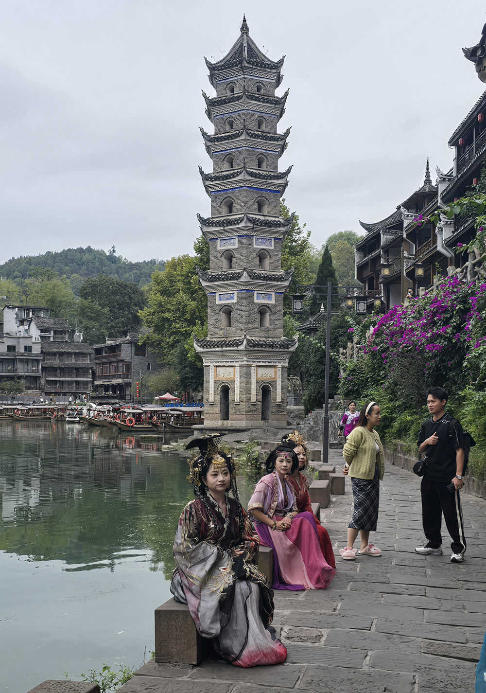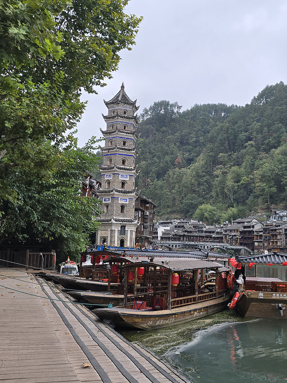 Alanguie le long de la paisible Tuojiang, la vieille ville sur pilotis de Fenghuang est particulièrement photogénique même quand le temps n’est pas ensoleillé…