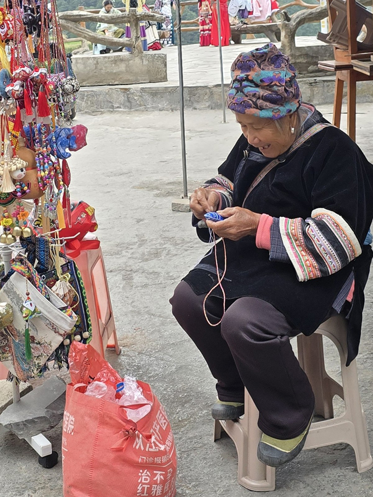 Dans les régions et villages touristiques, les femmes arrondissent les fins de mois en vendant des petits objets « maison ». Mais en attendant le chaland, elles ne perdent pas de temps et continuent la couture !