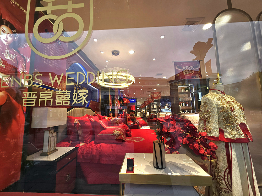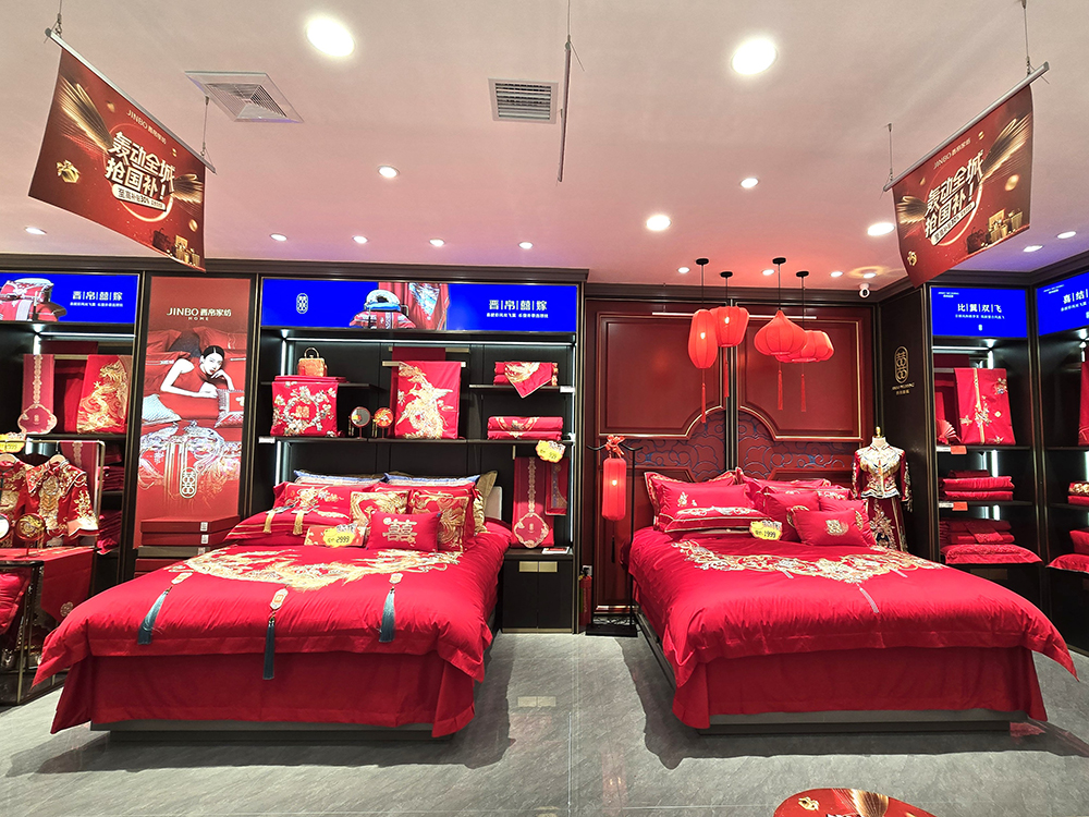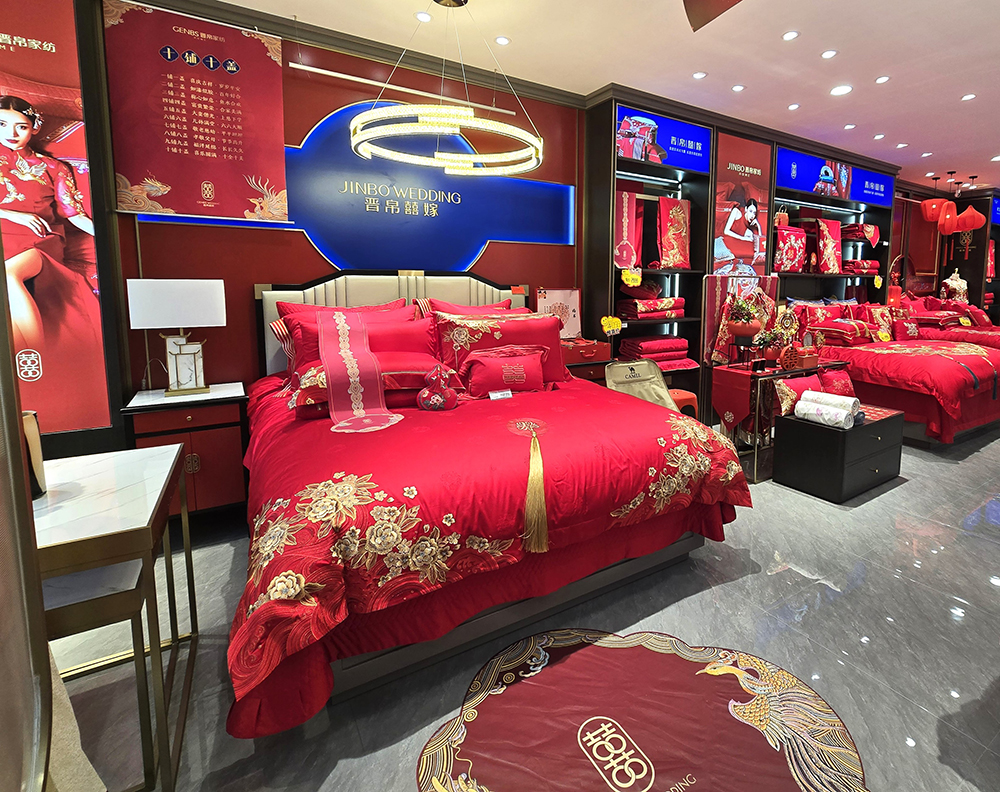 Dans le Guizhou, en cadeau de mariage, on offre une parure de lit. Rouge ! Couleur de la joie, de la bonne fortune, de la fécondité et… de la mariée ! C’est également la couleur qui éloigne les mauvais esprits. Le Dragon et le Phénix brodés sur cette literie symbolisent l’union du masculin et du féminin.