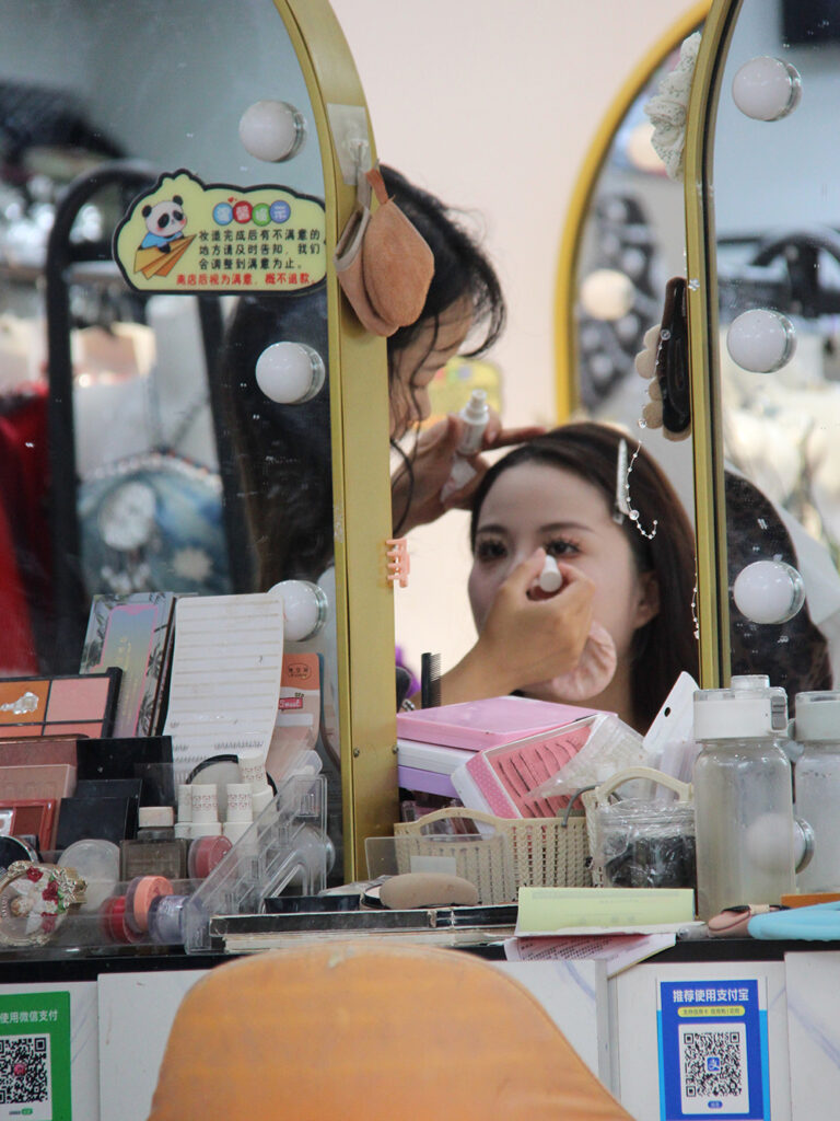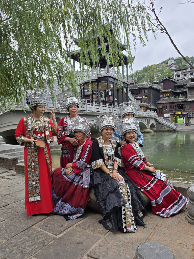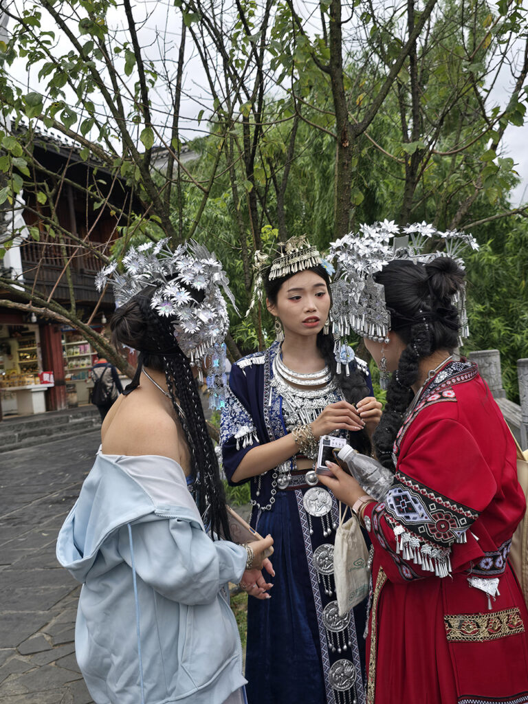 Le « grand jeu » (et le grand plaisir des Chinois) en vacances est de se travestir en costumes des minorités locales. Pour cette journée de location, tout commence par une longue séance de maquillage auprès d’une des très nombreuses boutiques dédiées, avant de déambuler jusqu’au soir, gravant l’événement dans les mémoires… des smartphones !