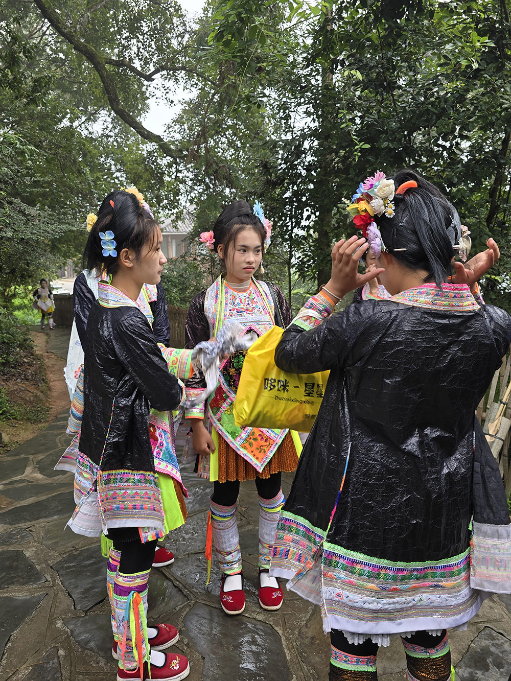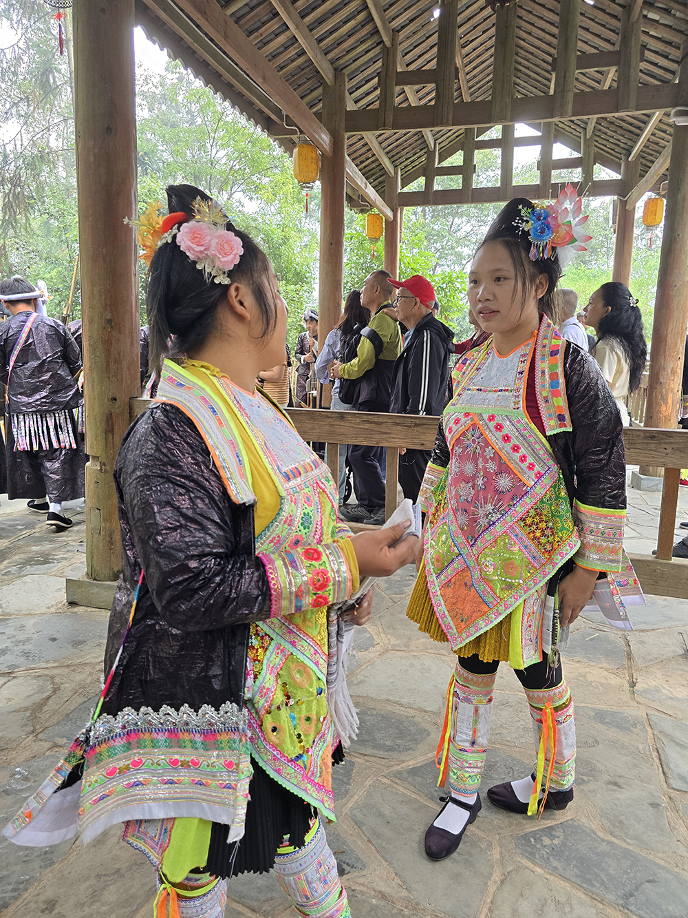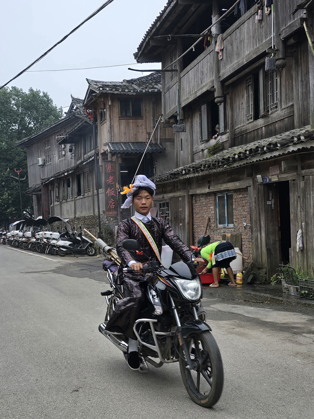 Tradition Miao, l’accueil des visiteurs se passe au son des chants des femmes accompagnées des « lushens », orgues à bouche. On tire aussi des salves des antiques fusils que les Miao sont très fiers d’être les seuls en Chine à avoir le droit de porter…