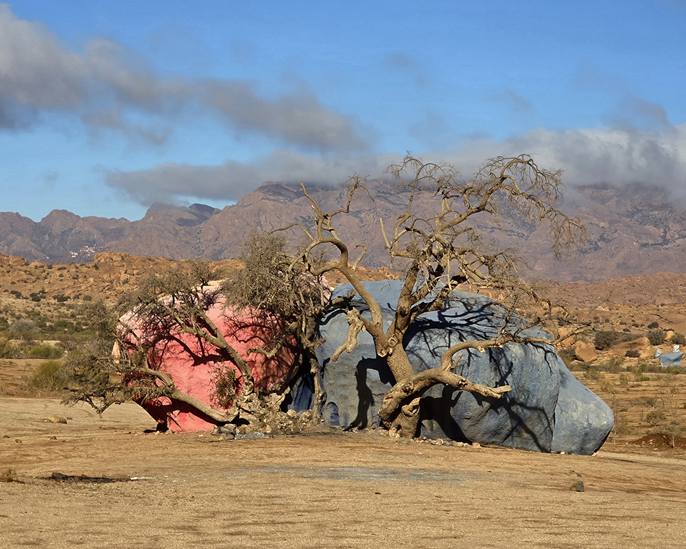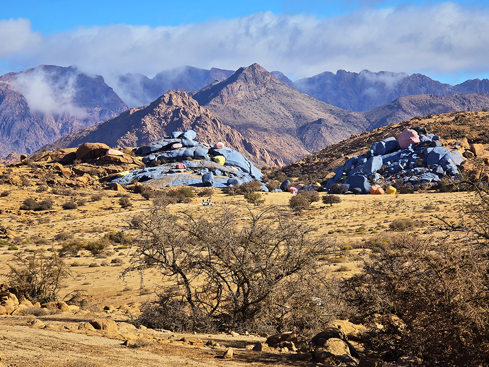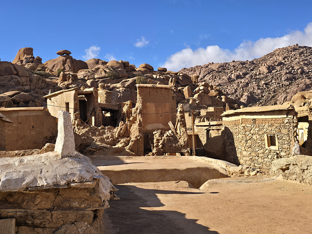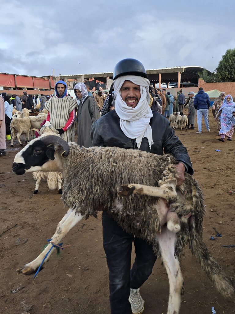 Lundi 15 décembre :  Après être passés dire au revoir à nos amis on attaque une superbe route de montagne dans l’Anti-Atlas pour monter à Tafraout (900m altitude). On se loge à l’hôtel « Les Amis » et on part se balader jusqu’au vieux village voisin où l’on visite une belle « maison traditionnelle berbère ». Ensuite on parcourt le souk des fabricants de babouches. Dîner au restaurant « la Kasbah » qui propose une bonne cuisine.