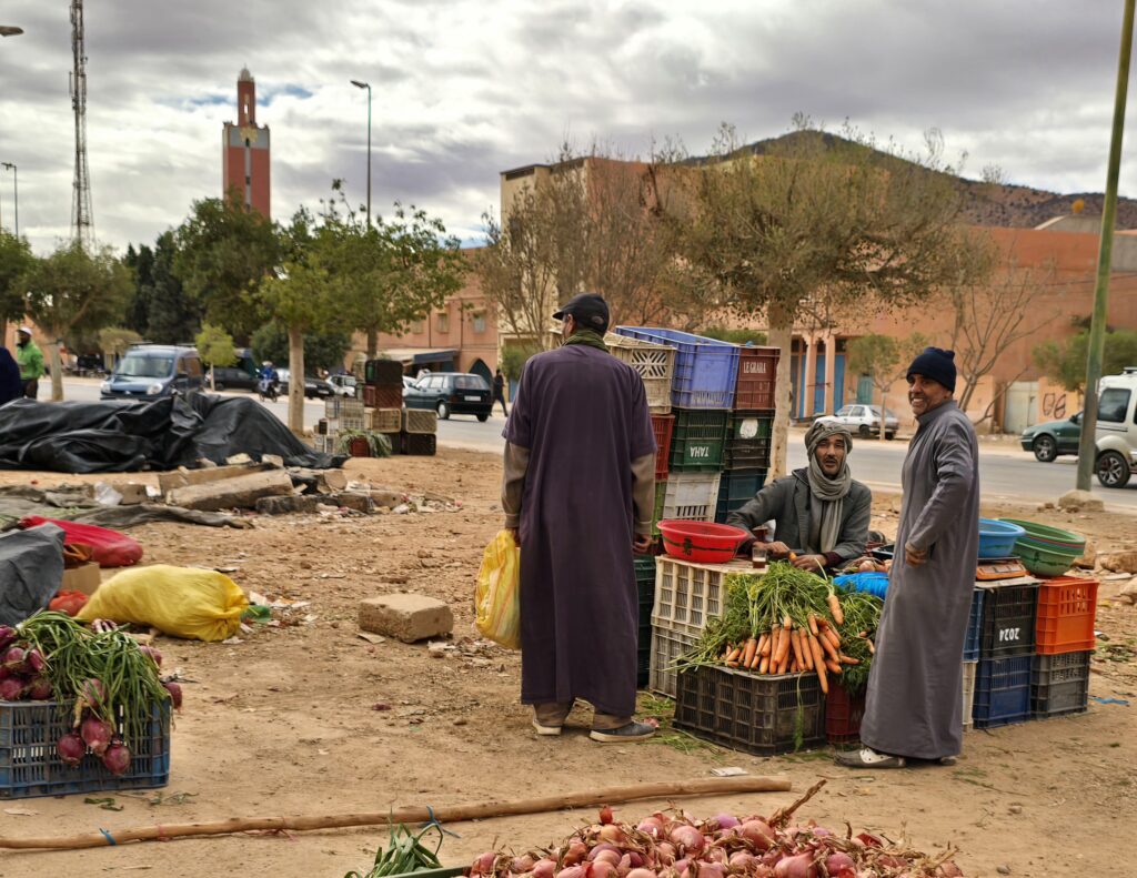 Jeudi 11 décembre : Vol Nantes – Agadir. Prise en main d’une voiture de location à l’aéroport et nuitée chez Ahmed dans la banlieue d’Agadir. Dîner dans un petit restaurant de quartier.