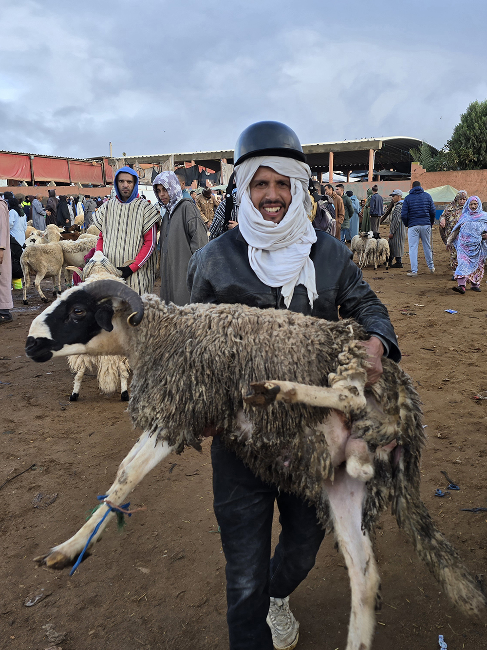 Mardi 16 décembre : On se réveille sous la pluie. On part en voiture voir les gorges et l’oasis de Aït Mansour à une trentaine de kilomètres de Tafraout. Les paysages sont magnifiques mais il bruine et il se met à venter fortement… puis à pleuvoir! On rentre à Tafraout après s’être promené dans un village de l’oasis. Balade en ville au souk du mardi entre 2 averses! Les marocains sont ravis de voir la pluie enfin tomber après 8 années : pas nous!