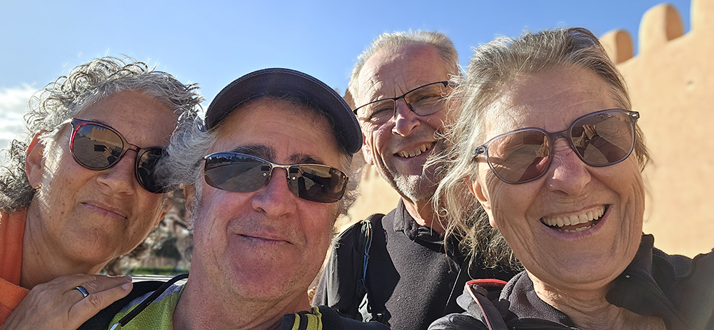 Dimanche 14 décembre : On longe la côte au nord de Mirleft avant d’attaquer une belle route de montagne pour rejoindre Tiznit où nous retrouvons nos amis Nathalie et Jacky en camping car. On se balade dans la vieille médina et le long de ses beaux remparts. Nous passons la soirée avec nos amis.