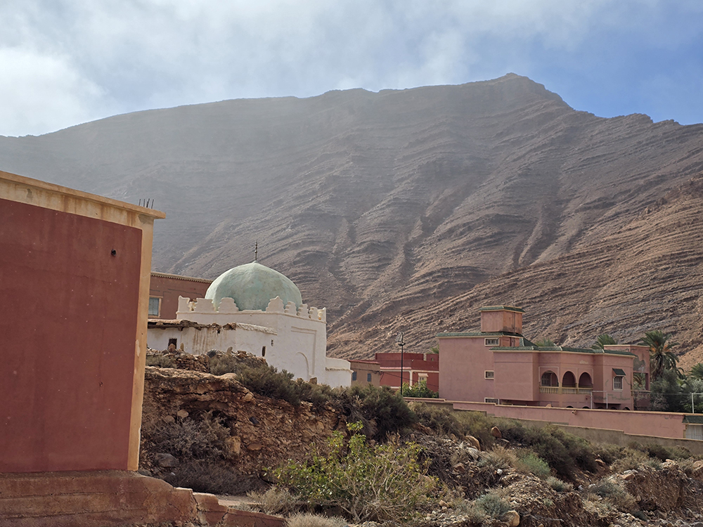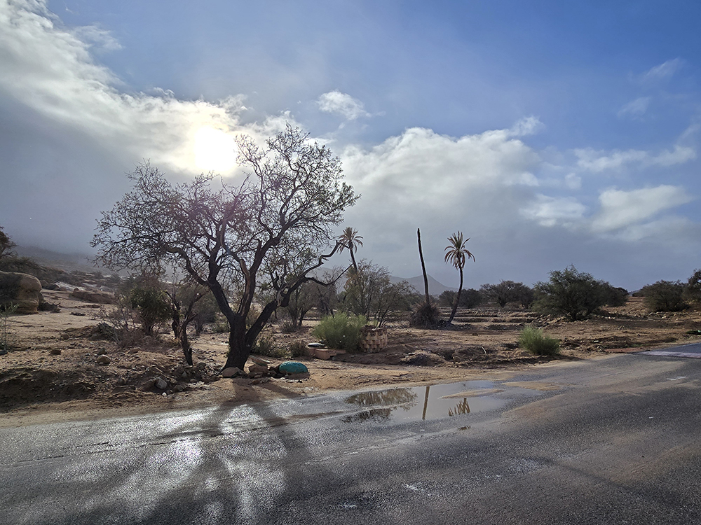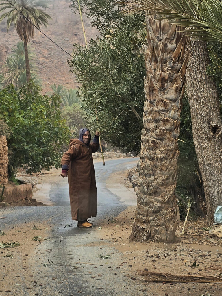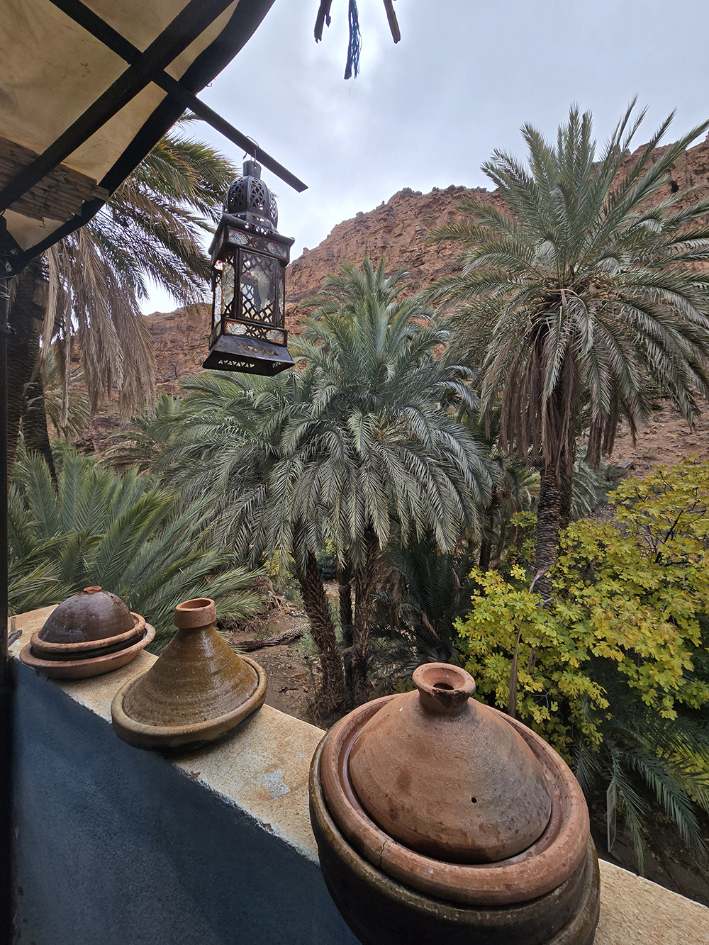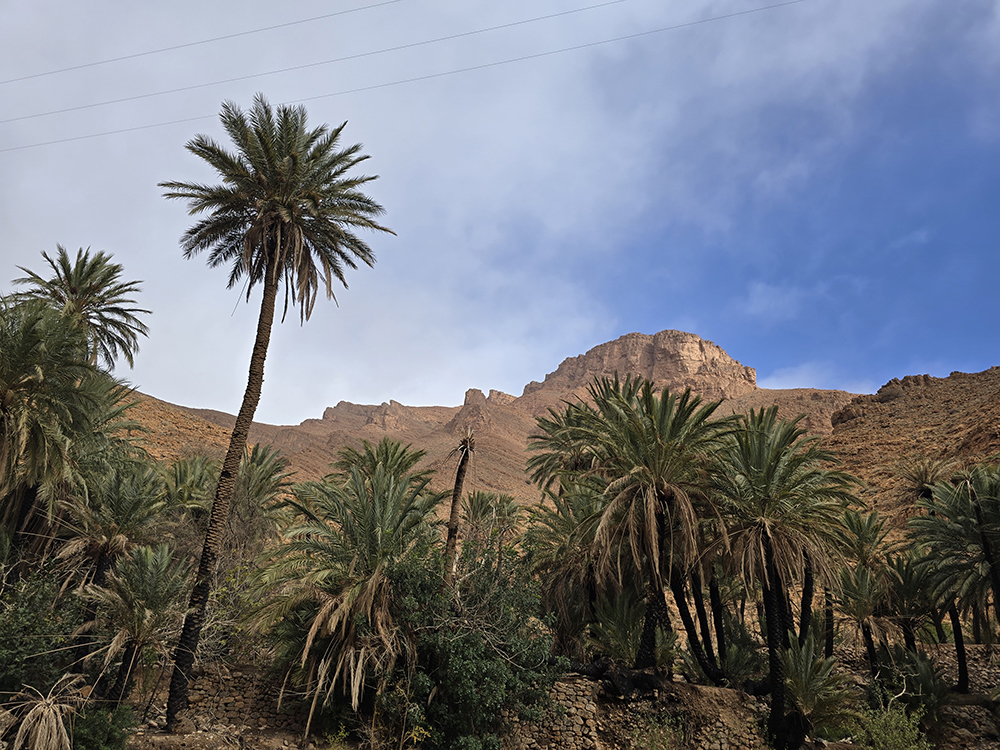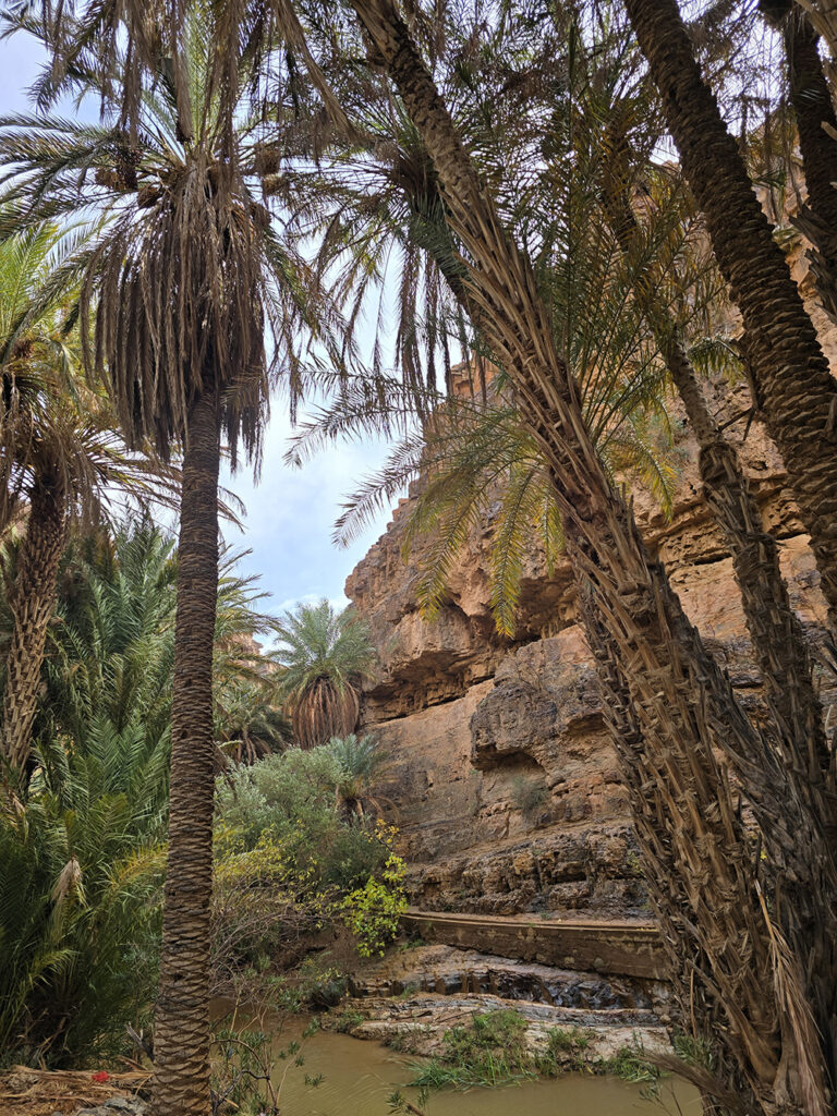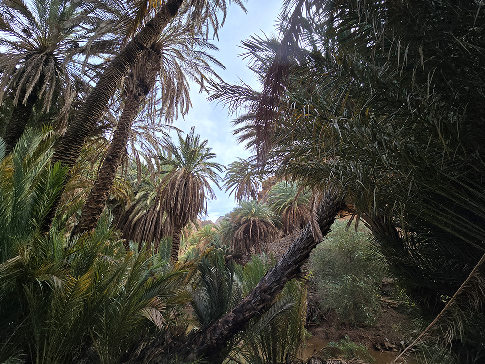 Après avoir traversé des montagnes aux arbres morts de sécheresse, arriver de l’autre côté dans l’oasis d’Aït Mansour est une belle surprise… humide !