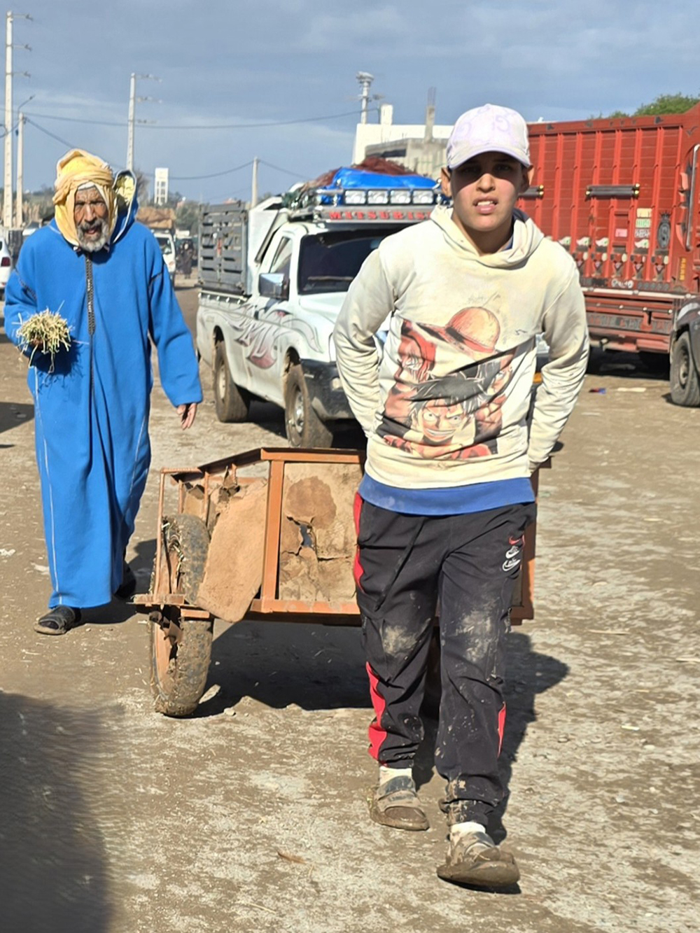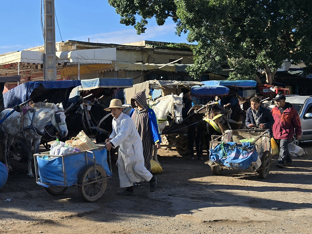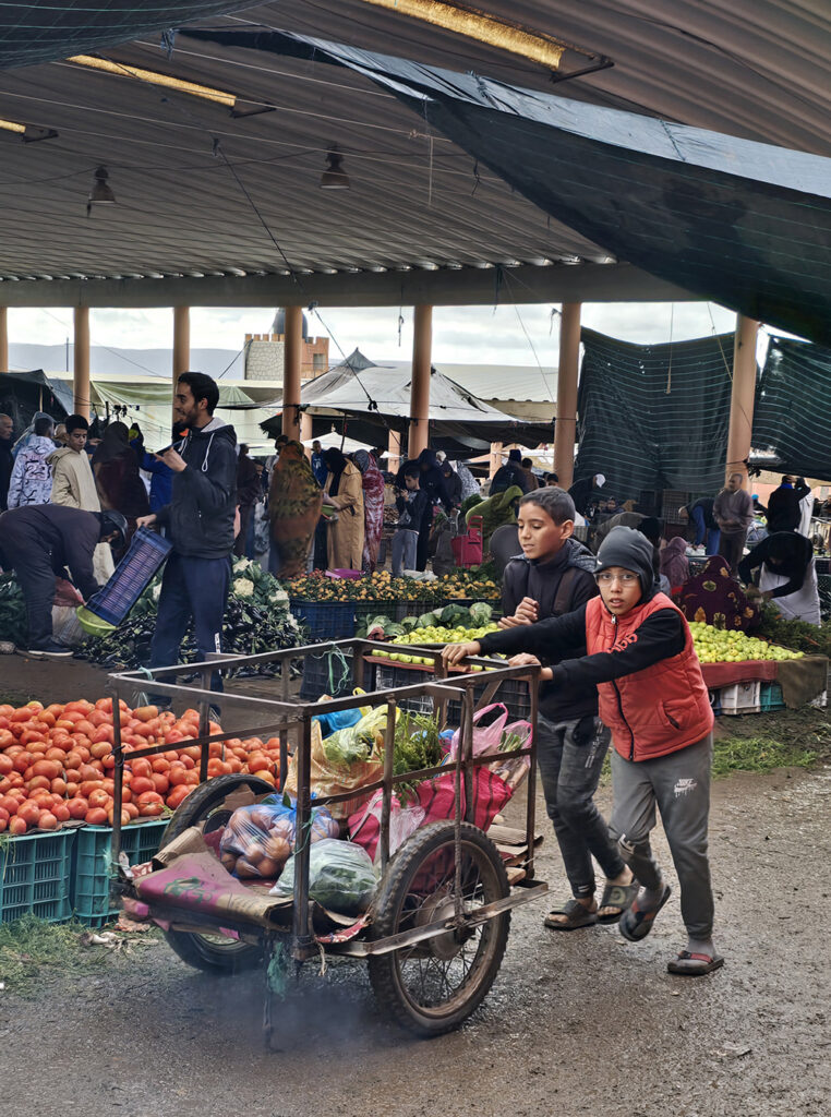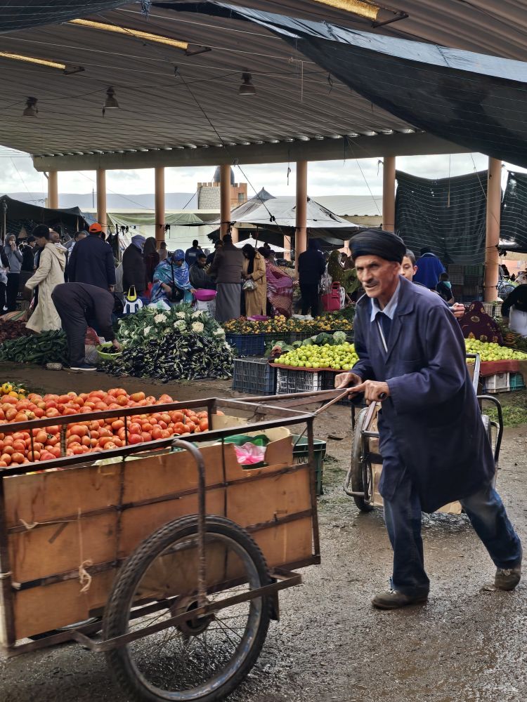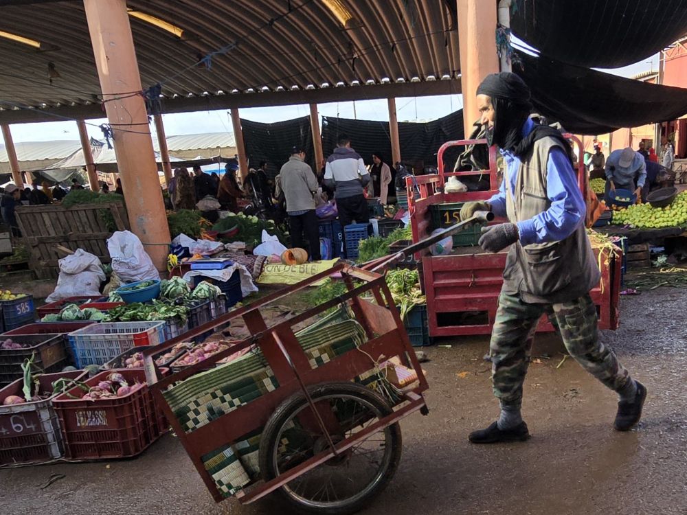 Un petit métier très prisé des marocains, jeunes ou vieux. Une carriole suffit pour se faire quelques dirhams les jours de souk en se proposant pour transporter les marchandises des acheteurs jusqu’à leur véhicule ou chez eux.