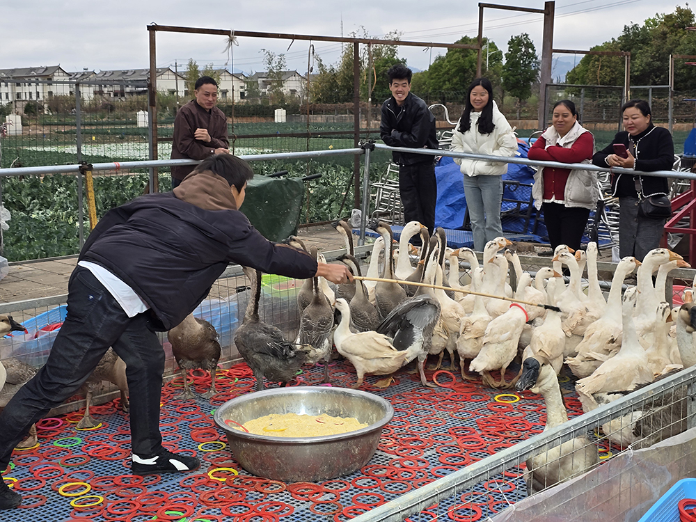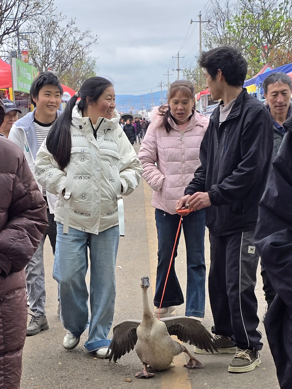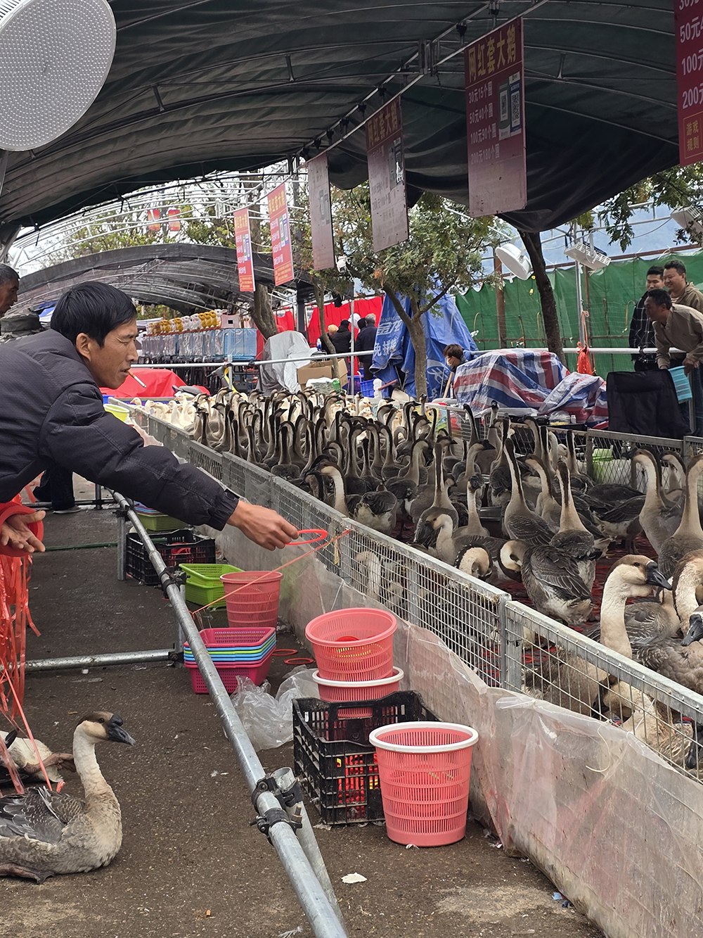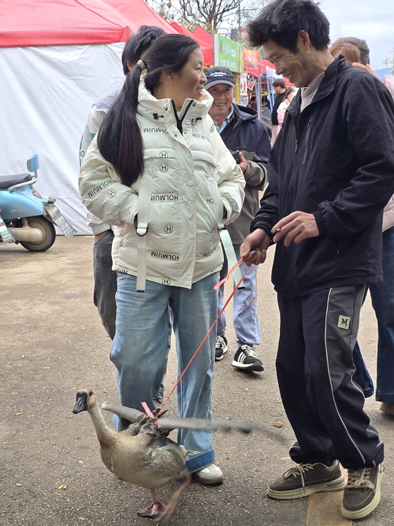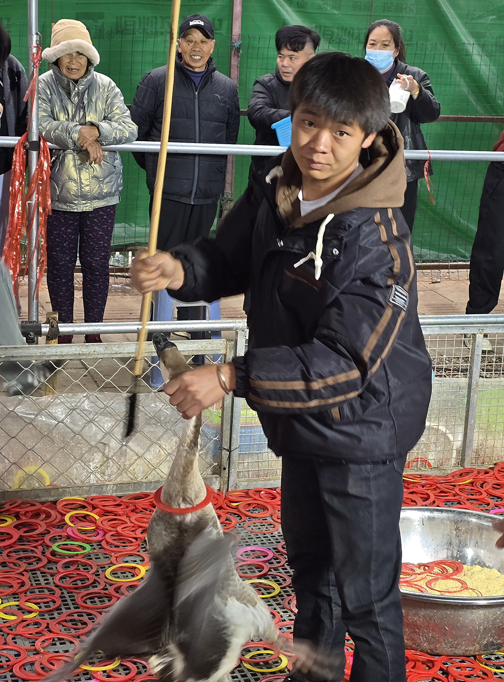 « Entouré, c’est gagné ! » Dans une foire à Tonghai nous nous sommes amusés à voir ce « jeu de l’oie chinois » pour gagner… des oies! En tout cas les heureux gagnants partent fiers de leur gros lot !