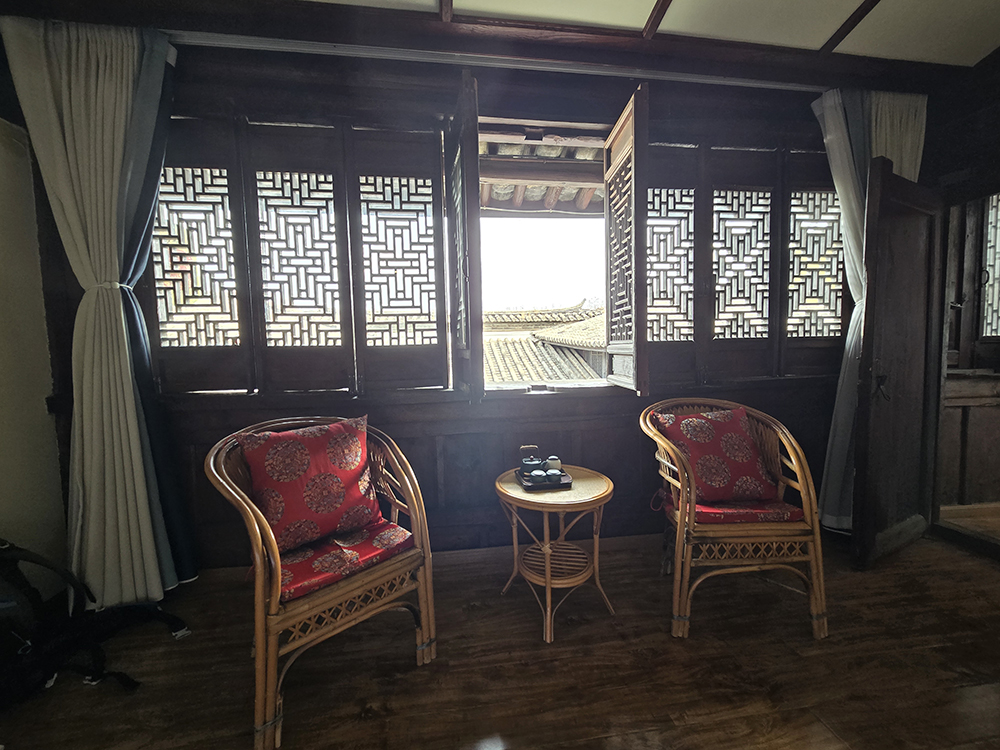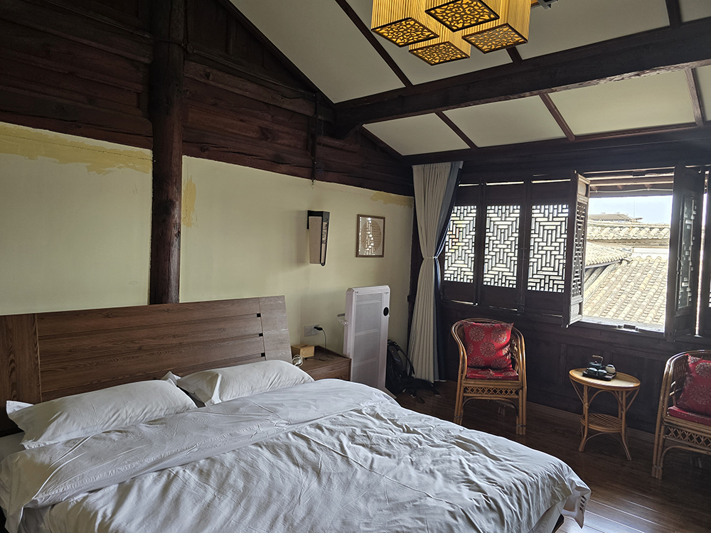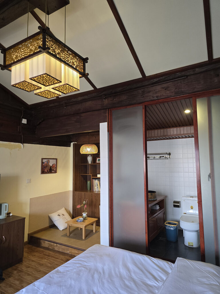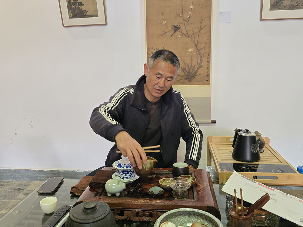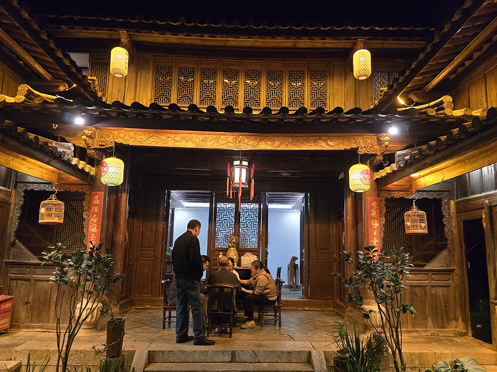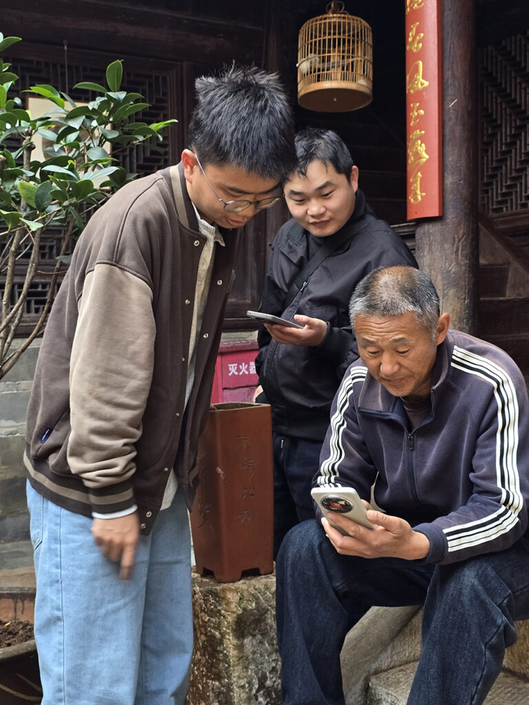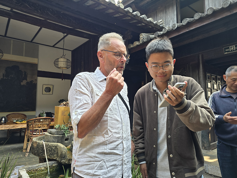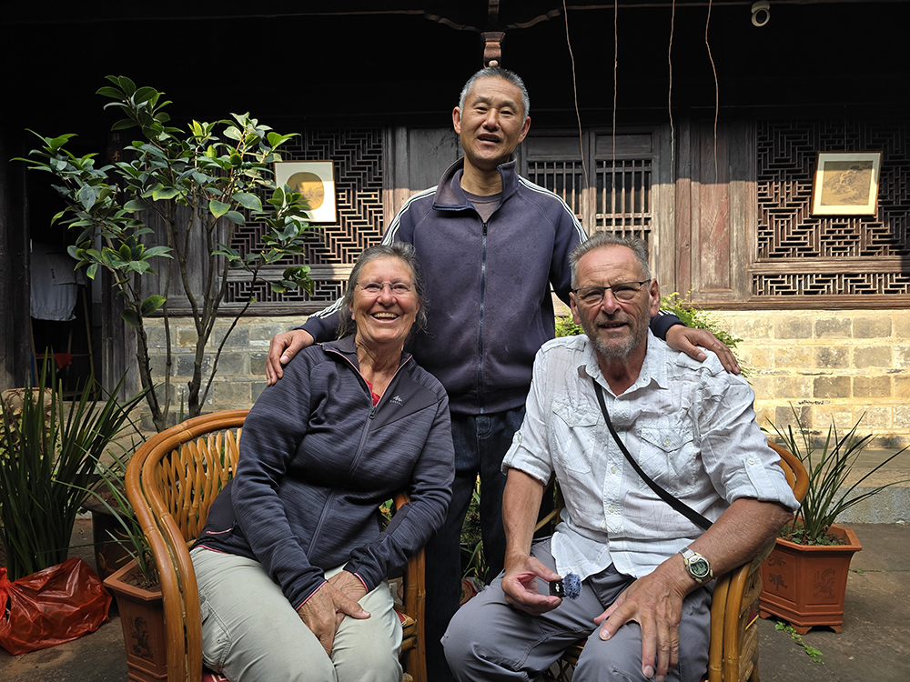 A Tong Hai nous avons été hébergés dans une belle maison traditionnelle de la vieille ville. Nous avons sympathisé avec notre logeur qui était très accueillant. Il est amateur d’art (invite des artistes à travailler chez lui) c’est aussi un grand sportif, sa passion étant le vélo. Il excellait dans l’art de faire la cérémonie du thé et nous invitait souvent à le boire avec lui. Pendant notre séjour, Il a tenu à faire venir la télévision pour nous interviewer.