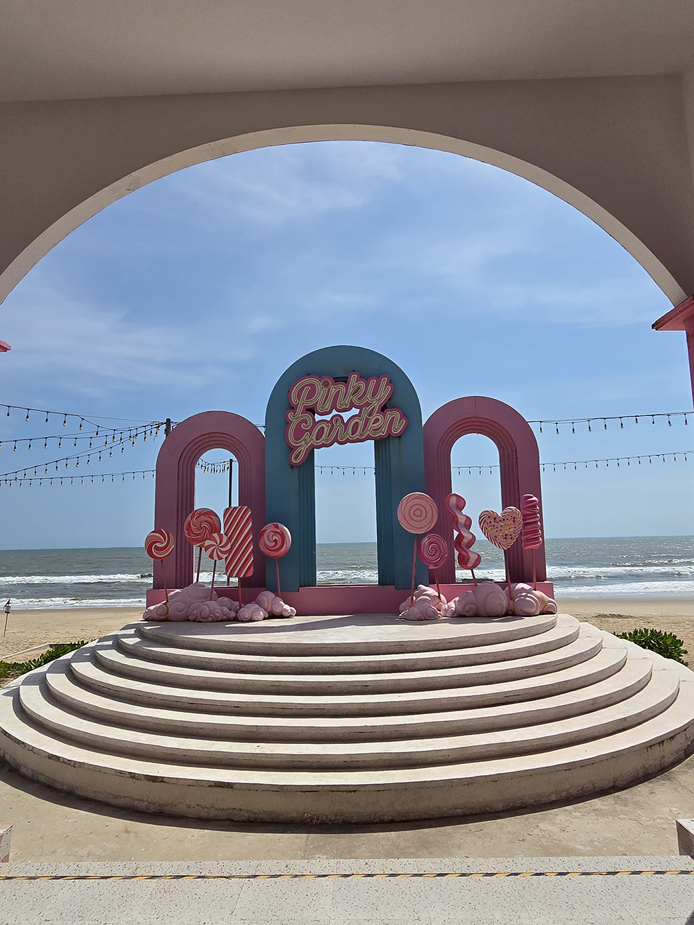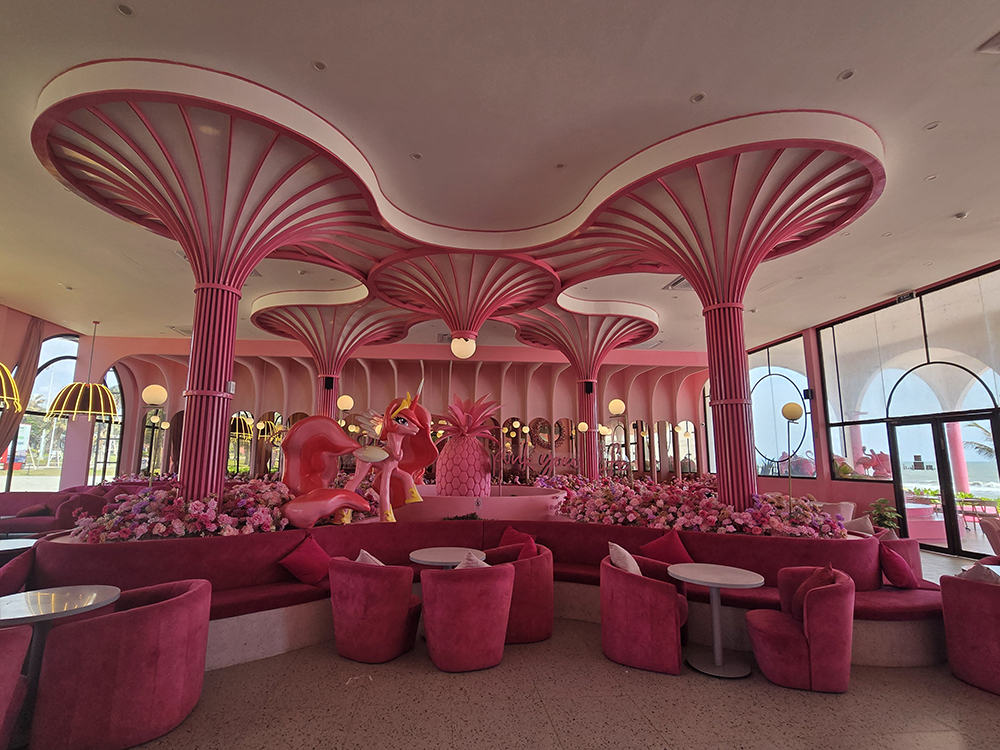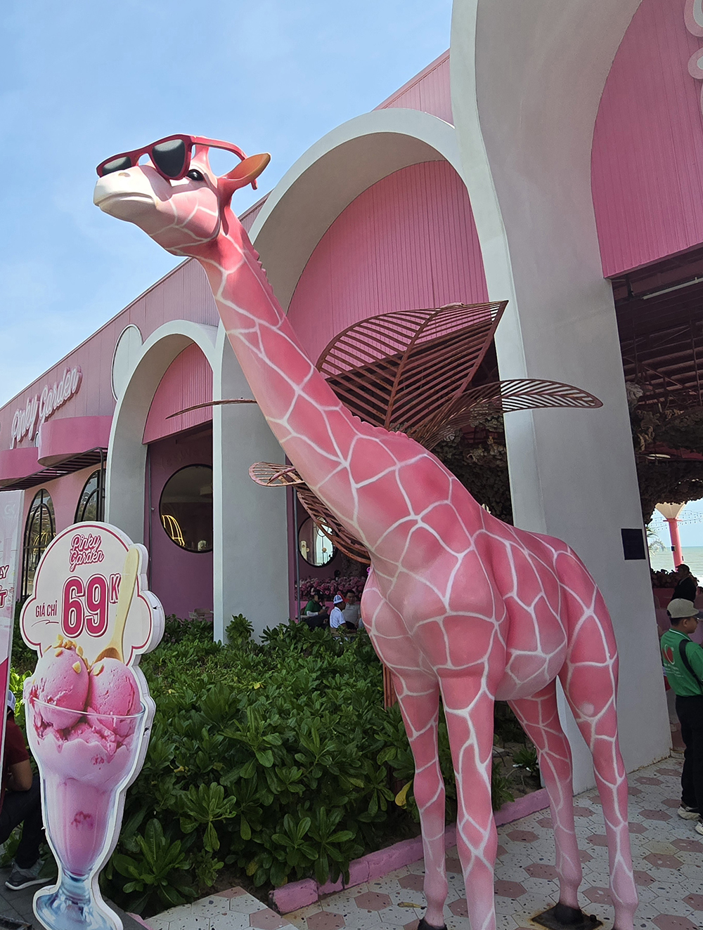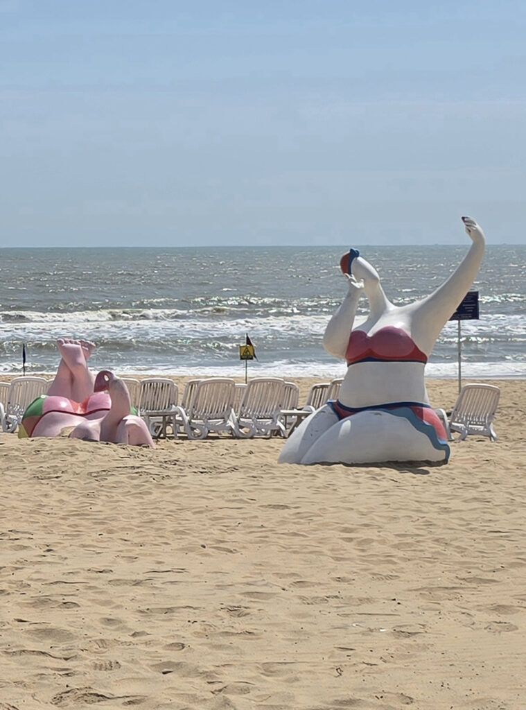 Au sud de Phan Thiet la côte est loin d’être naturelle ! Un bar « Pinky garden » domine la plage Bikini et ses statues géantes de baigneuses. Le tout dominé par des hôtels de luxe gigantesques !