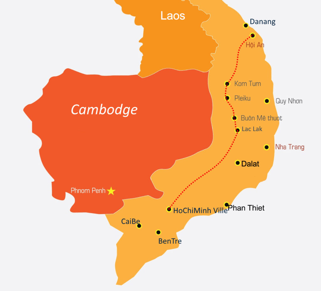 2026 : Ho Chi Minh – Phan Thiet/MuiNe, Dalat, la route de montagne des hauts plateaux, Nhatrang, Qui Nhon, et Da Nang.