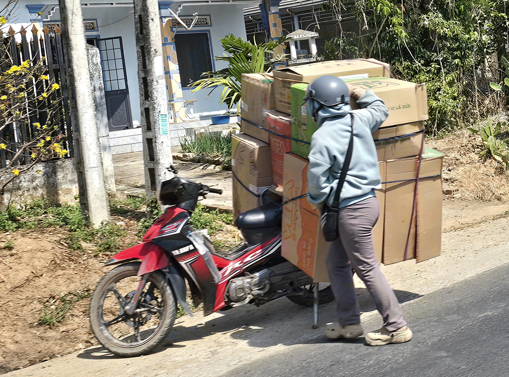 Au Vietnam, il y a peu de camions de transports et ils sont très forts pour charger vélos et scooters!