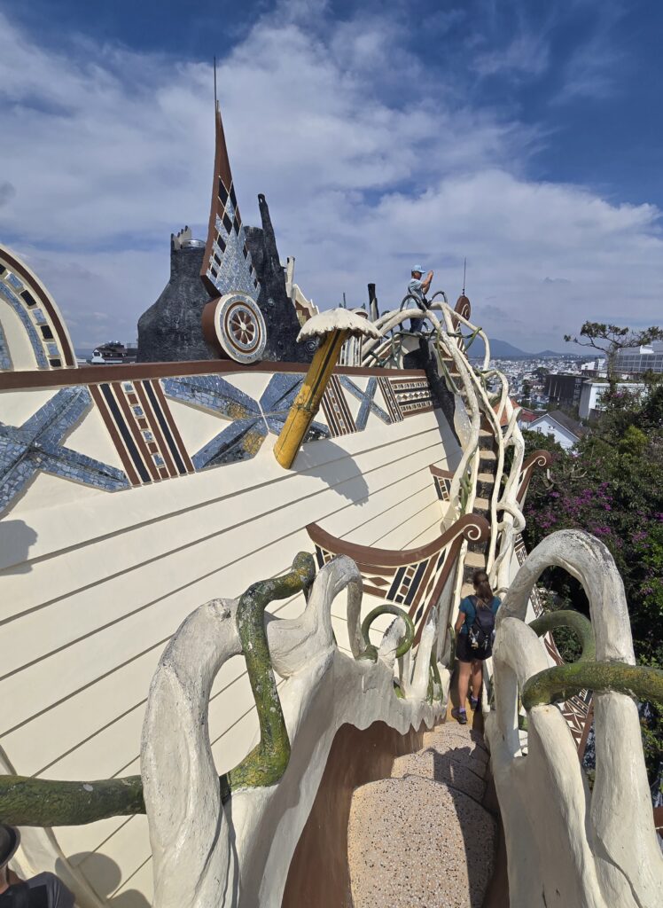 Un site incontournable à Dalat! Une création d’architecture fantastique, oeuvre magnifique et très originale due à madame Dang Viet Nga. Plus qu’une maison, un univers surréaliste entre Dali, Gaudi et Ernst. On s’y promène dans tous les sens par passerelles, escaliers et tunnels : un vrai labyrinte sur plusieurs étages où l’on passe d’un domaine végétal au monde animal puis sous marin…