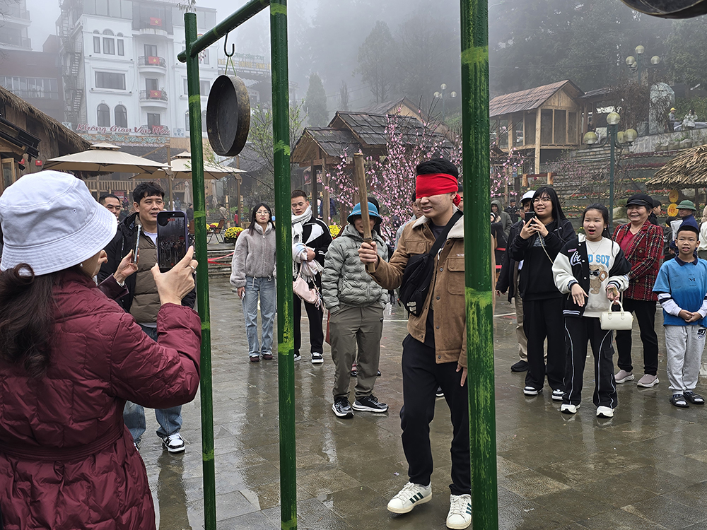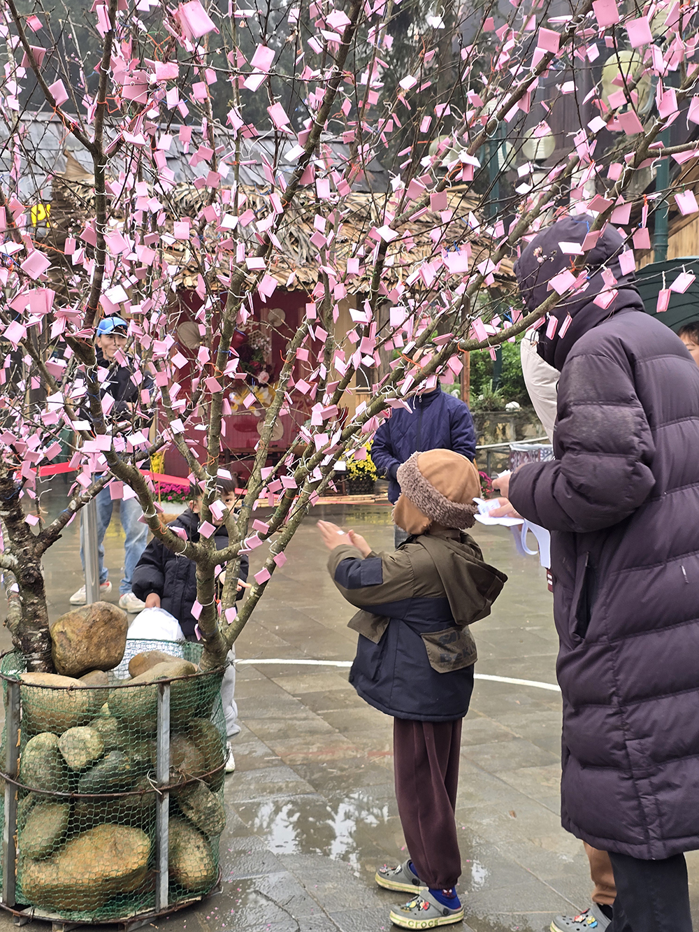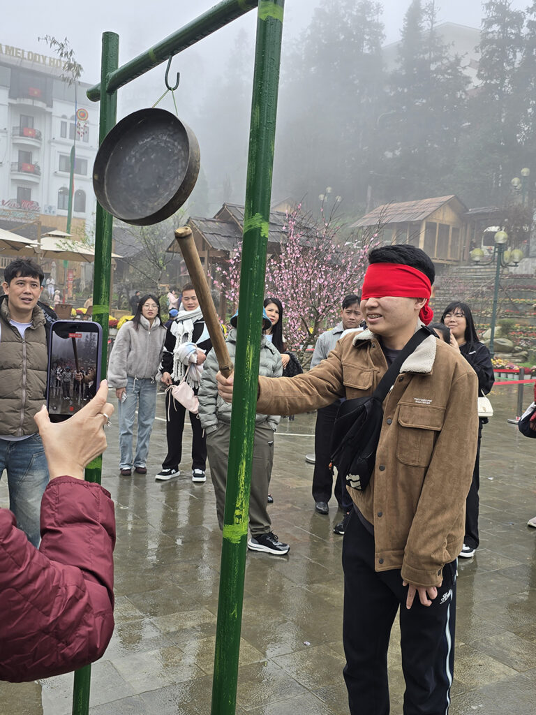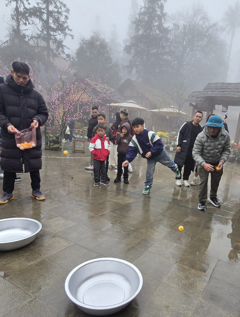 Pour le Têt, à Sapa, qu’importe la pluie, on s’amuse dans les parcs : jeux de balançoire, colin-maillard, billets surprises sur un arbre, ou jeux d’adresse… pendant que certains préfèrent se réchauffer avec un bon feu.