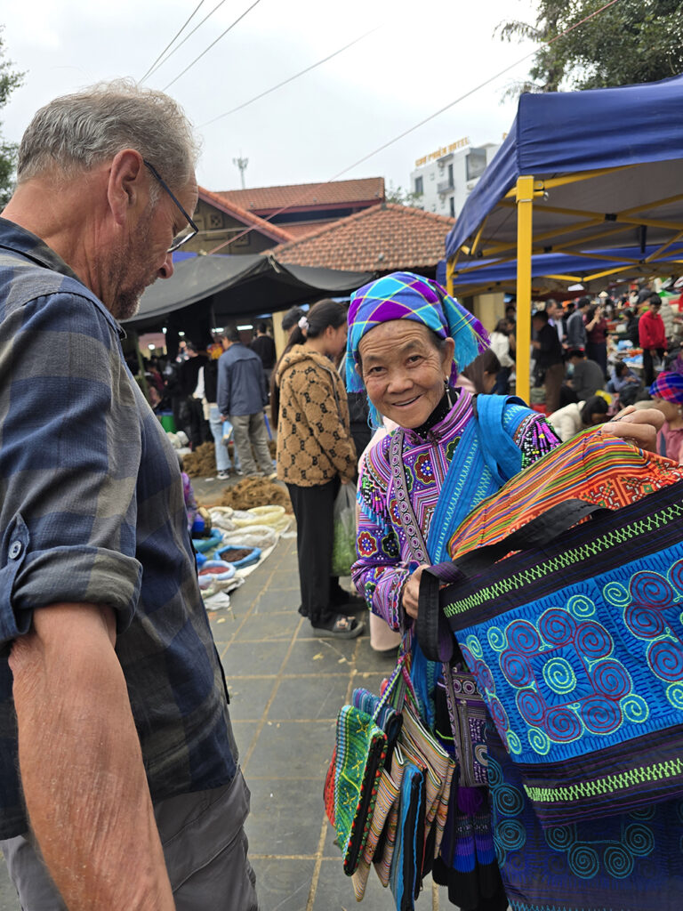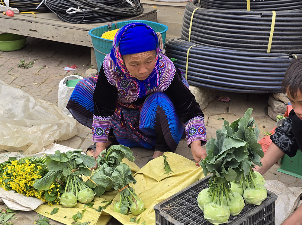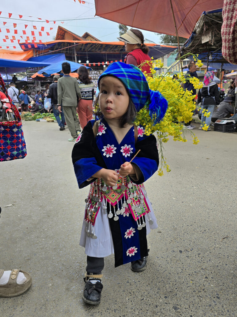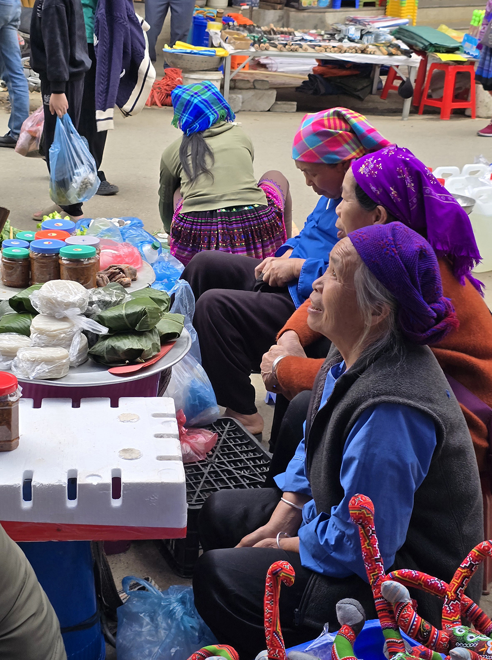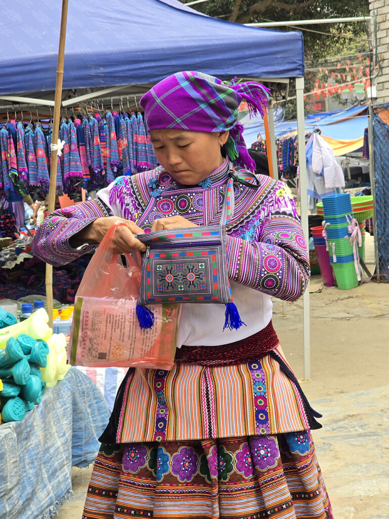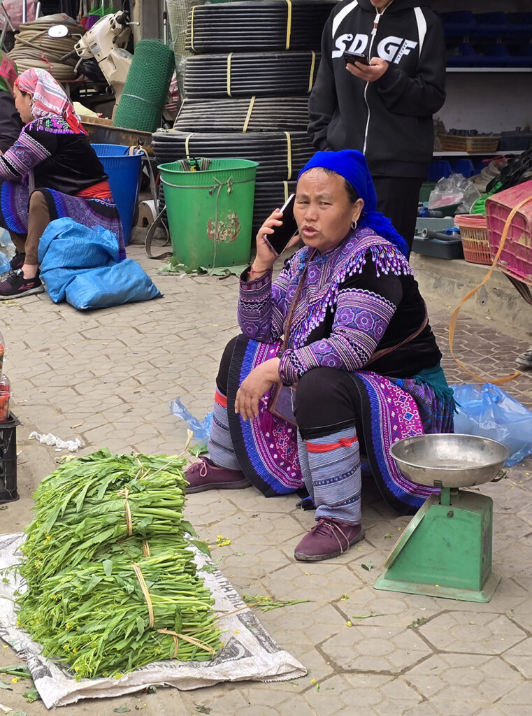 Venus à Bac Ha il y a 15 ans, les couleurs des vêtements ont changé : le orange jugé « trop flashy » est remplacé par le bleu pour les jupes des Hmongs fleuris! Le marché du dimanche très prisé des touristes est un peu décevant, mais reste très coloré et sympathique.