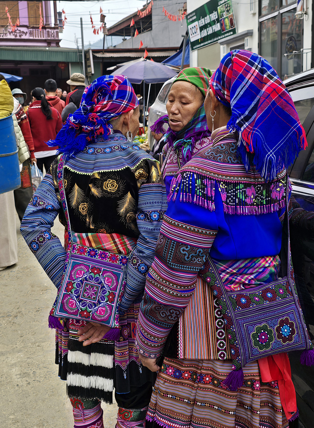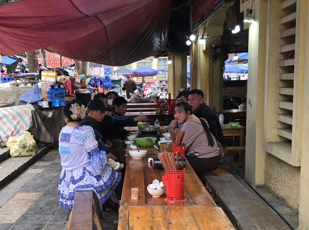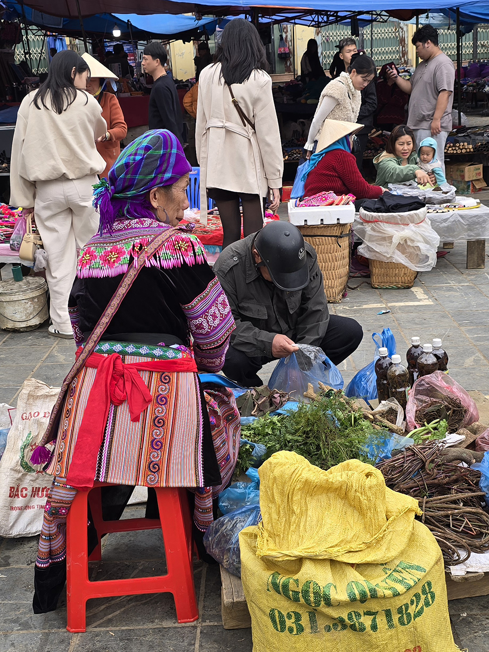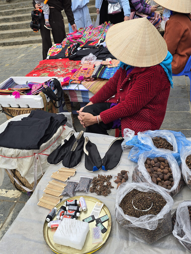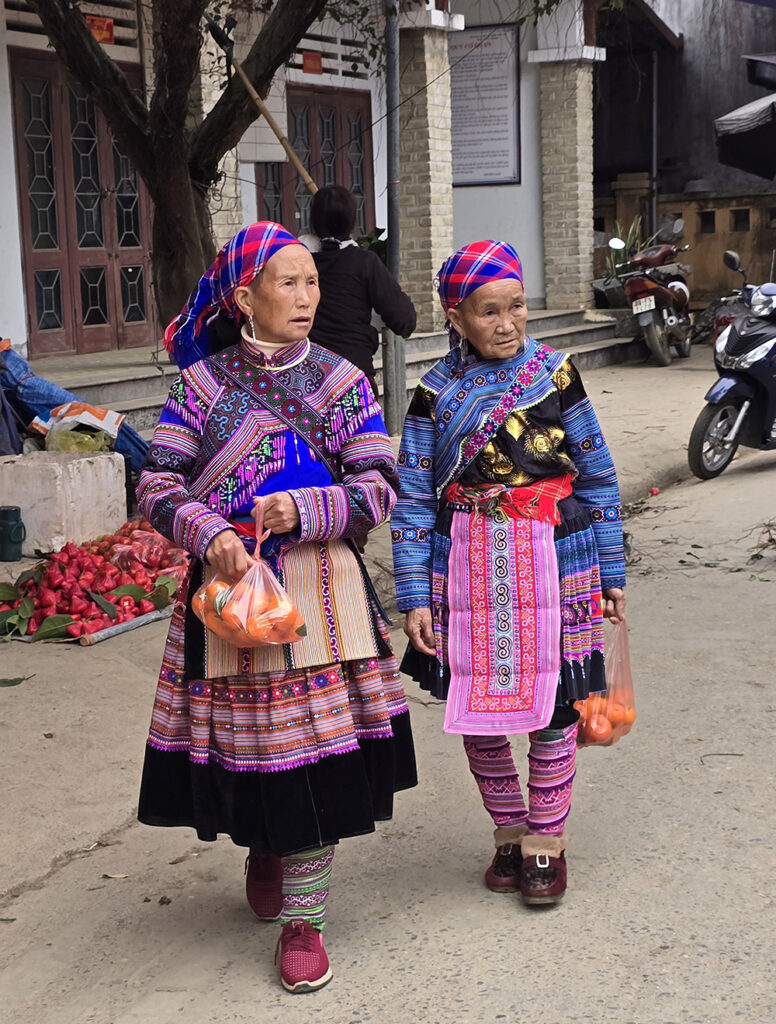 Venus à Bac Ha il y a 15 ans, les couleurs des vêtements ont changé : le orange jugé « trop flashy » est remplacé par le bleu pour les jupes des Hmongs fleuris! Le marché du dimanche très prisé des touristes est un peu décevant, mais reste très coloré et sympathique.