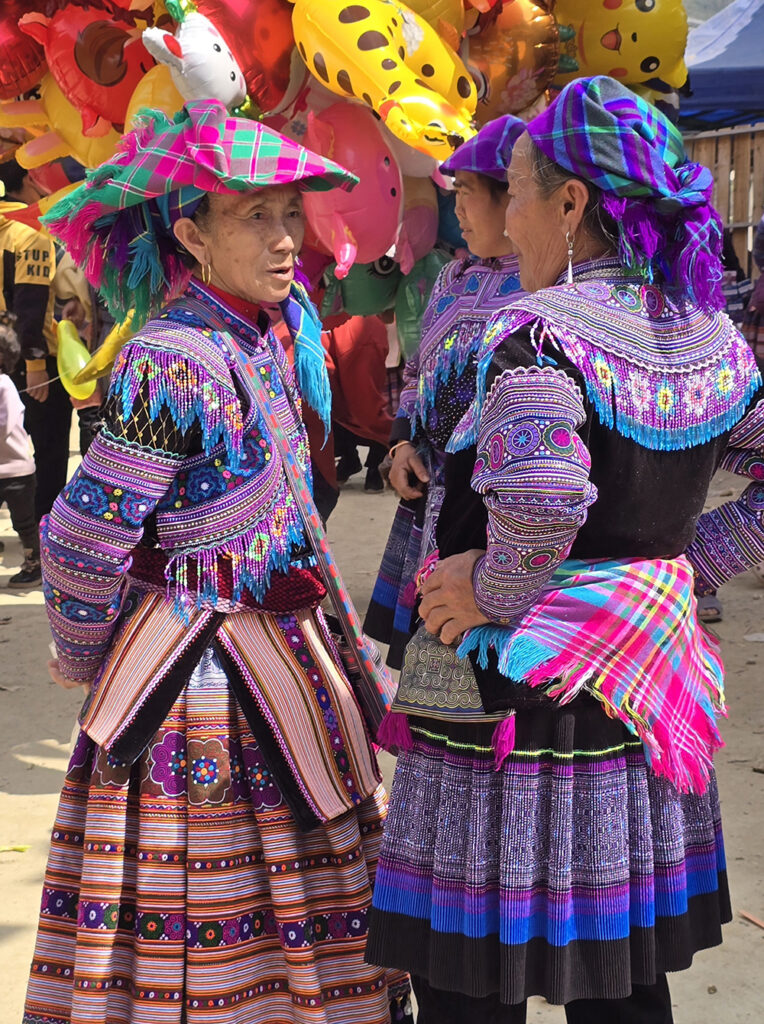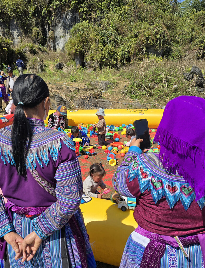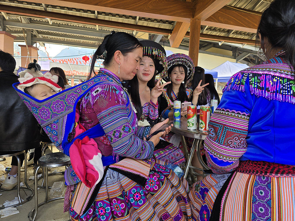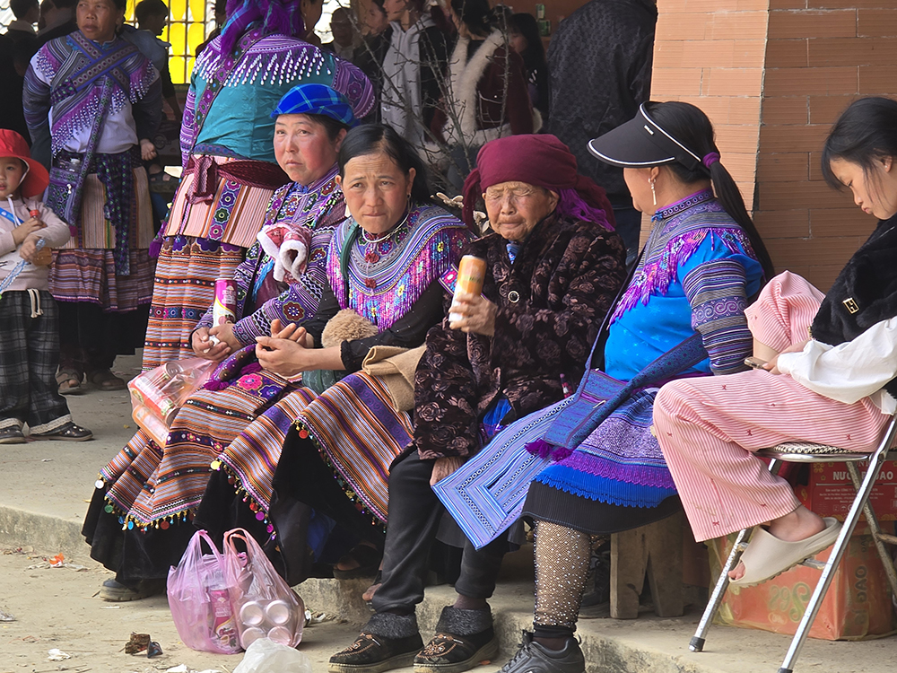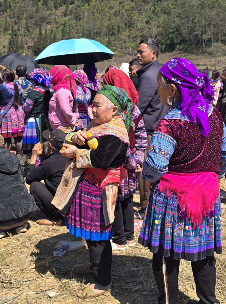 Au festival du printemps « Hoi Gau Tau » des ethnies Mongs autour de Bac Ha, les mamies viennent bavarder, les hommes se retrouvent autour d’une table pour boire et fumer… mais la jeunesse est aussi au rendez-vous!