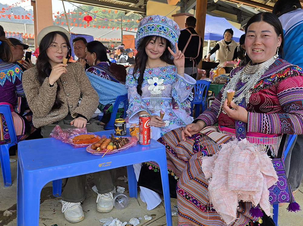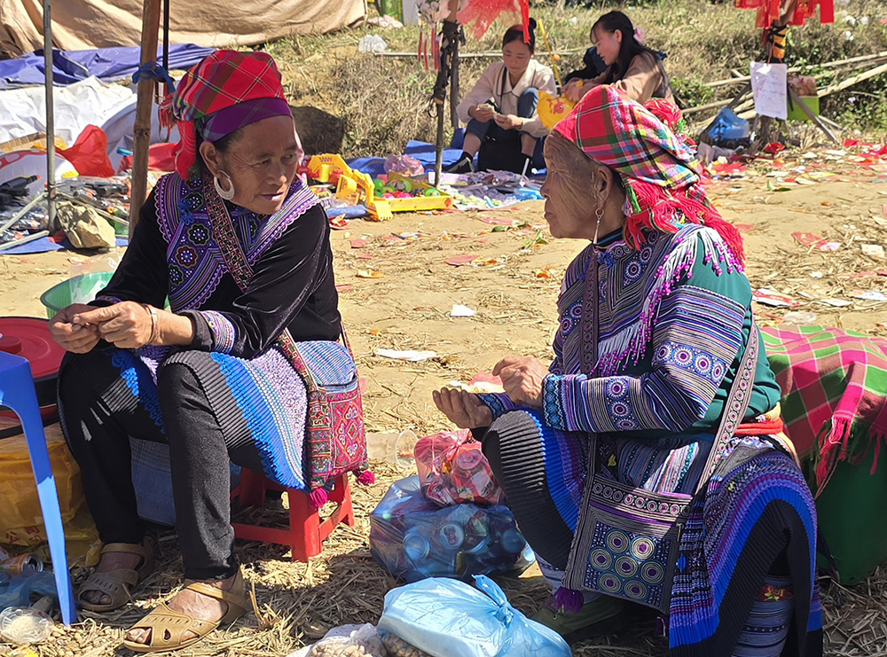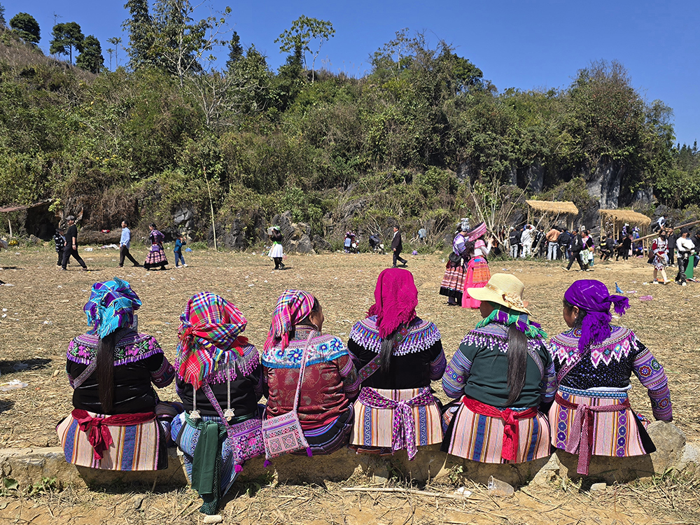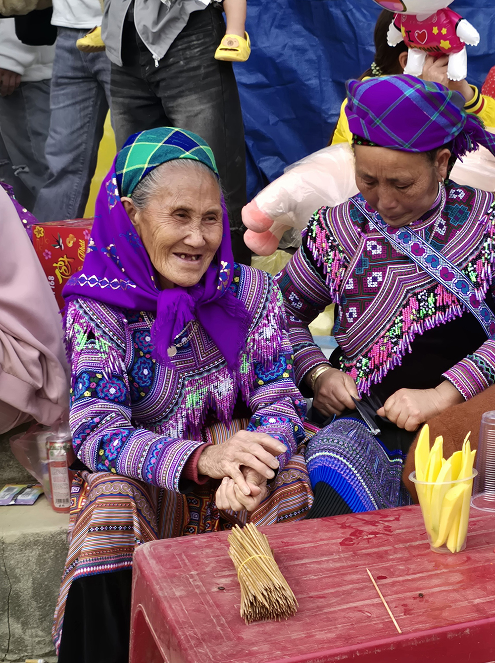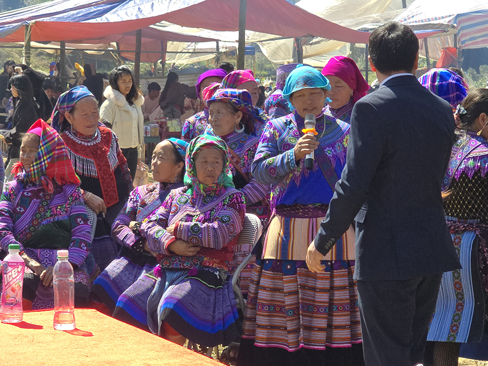 Au festival du printemps « Hoi Gau Tau » des ethnies Mongs autour de Bac Ha, les mamies viennent bavarder, les hommes se retrouvent autour d’une table pour boire et fumer… mais la jeunesse est aussi au rendez-vous!