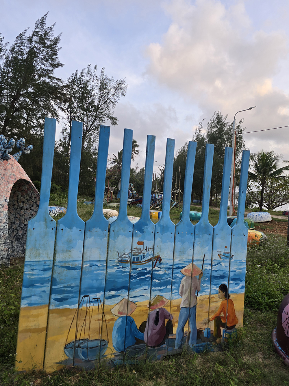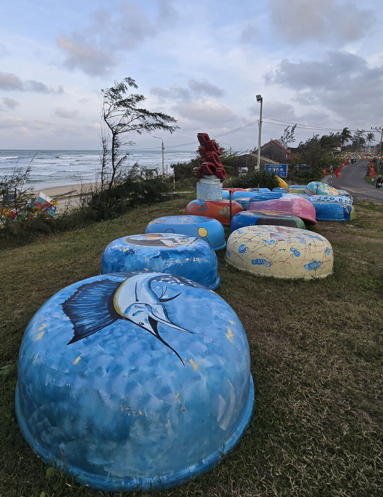 Tam Tanh est connu pour ses plages tranquilles encore préservées du tourisme de masse, mais aussi pour son street art : ici presque toutes les maisons sont décorées sur le thème de la mer, mais aussi les vieilles coques de bateaux-paniers et avirons usagés : un vrai régal pour les yeux.