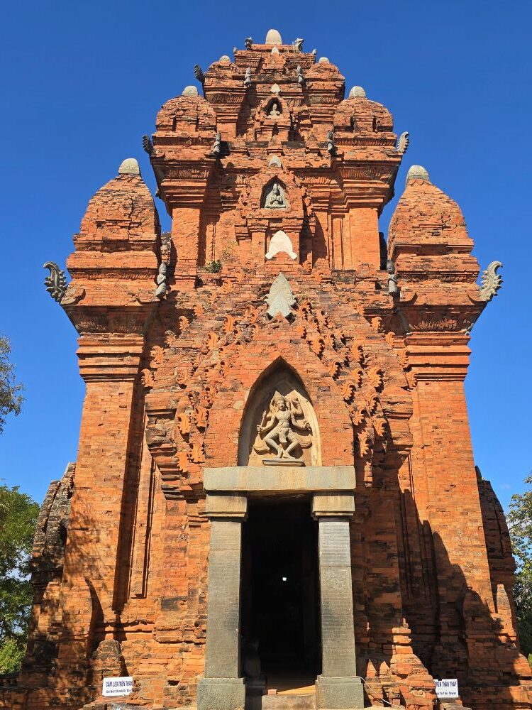 28 janvier : Balade en scooter au Nord de Phan Rang. Nous visitons le site des tours de Thap Cham à une dizaine de kilomètres de la ville. Ensuite , nous allons voir les ports de Ming Tuong et de Vinh Hy. On poursuit notre route vers le nord et découvrons une superbe côte, offrant de belles vues sur le golfe de Cam Rahn. Nous rentrons par la route de l’intérieur au travers des rizières et des marais salants. Le soir nous dînons dans un restaurant très populaire et animé.