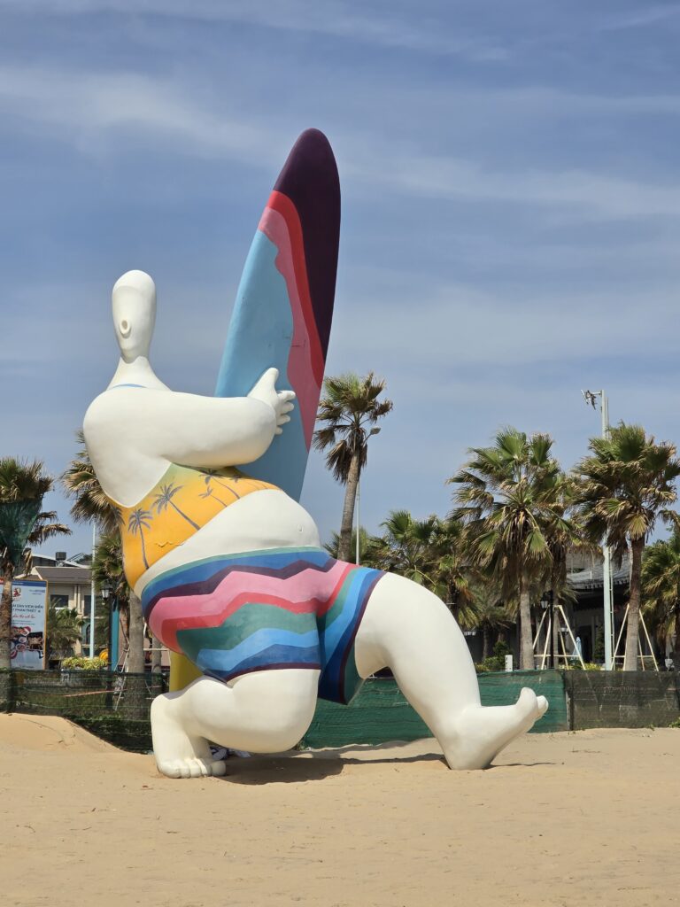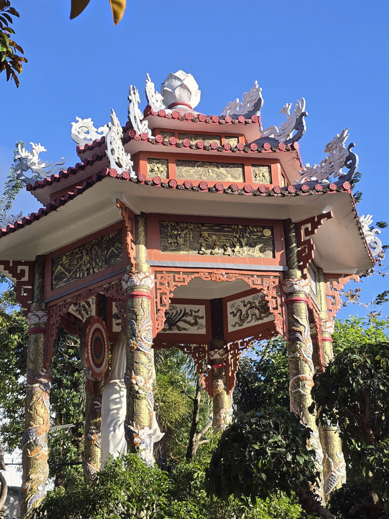 15 février : En scooter à la presqu’île de Mui pour voir la Pagode de Lady Bouddha 67 mètres de haut. Puis route pour voir le « Col des nuages », très décevant car le site est ravagé par un projet immobilier ! Retour sur la ville de Danang pour explorer le quartier touristique du pont du Dragon et des bords du fleuve. Soirée le log des plages.