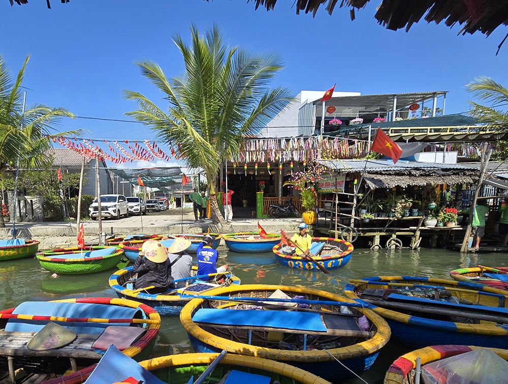 13 février : Découverte en scooter des environs de Hoi An, le marché , la plage, les ports, les villages. On va sur la presqu’île de Cua Dai puis voir les bateaux paniers colorés « coconut boat » de Phu Huy et les charpentiers de l’île de Kim Bong. Retour par le marché aux poissons de Thanh Ha. Et bière du soir devant une pagode à contempler le coucher de soleil. Dîner au food-street de Hoi An.