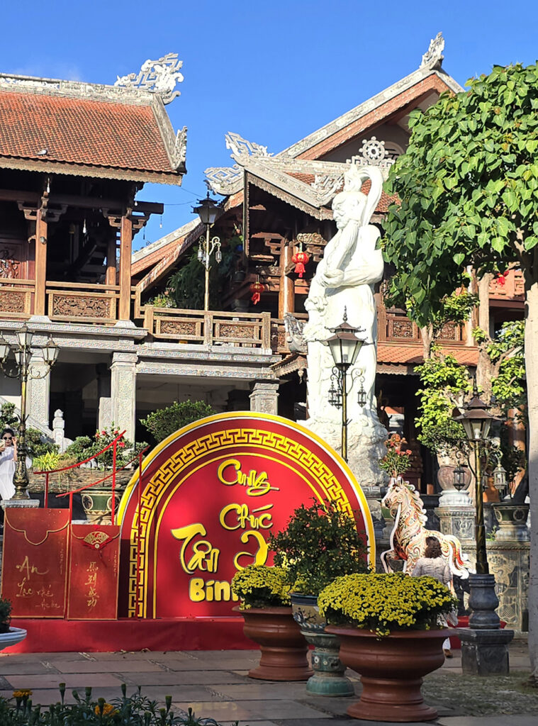 7 février : Nous quittons la région des hauts plateaux pour revenir à la côte. Longue route pour Quy Nohn où nous arrivons vers 15h30. Nous découvrons cette sympathique station balnéaire principalement fréquentée par des touristes vietnamiens. la ville prépare le Têt avec l’année du cheval.