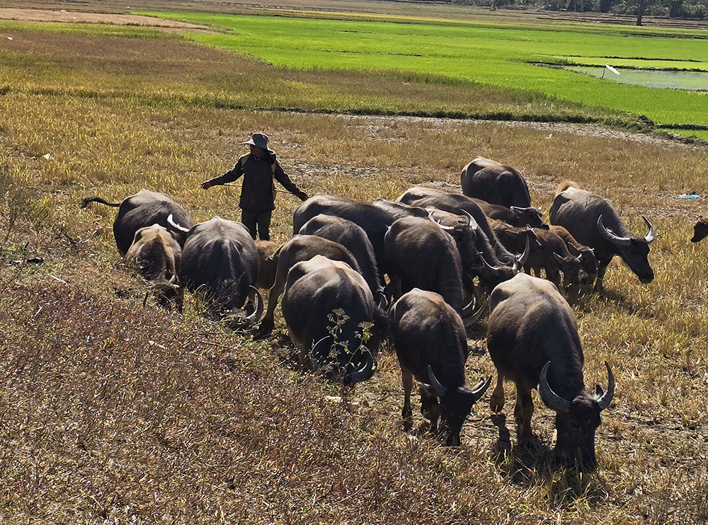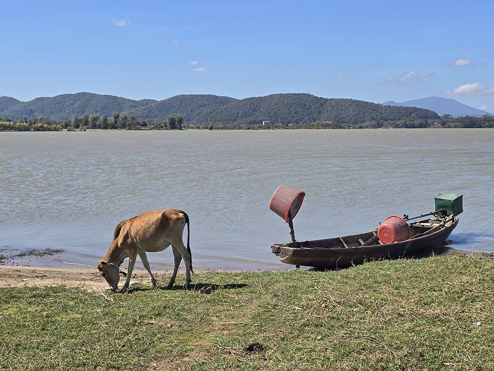4 février : Balade en scooter au lac de la mer et visite d’une vieille maison communale Jairai  transformée en restaurant. Ensuite nous roulons jusqu’au volcan Chu Dang Ya, que nous gravissons pour voir le cratère occupé par la culture et les vaches qui paissent! Poursuite vers la magnifique pagode bouddhiste Buu Minh sur le retour vers Pleiku. Visite d’une dernière pagode au Sud de la ville, Quan Am, avant d’aller dîner avec les locaux.
