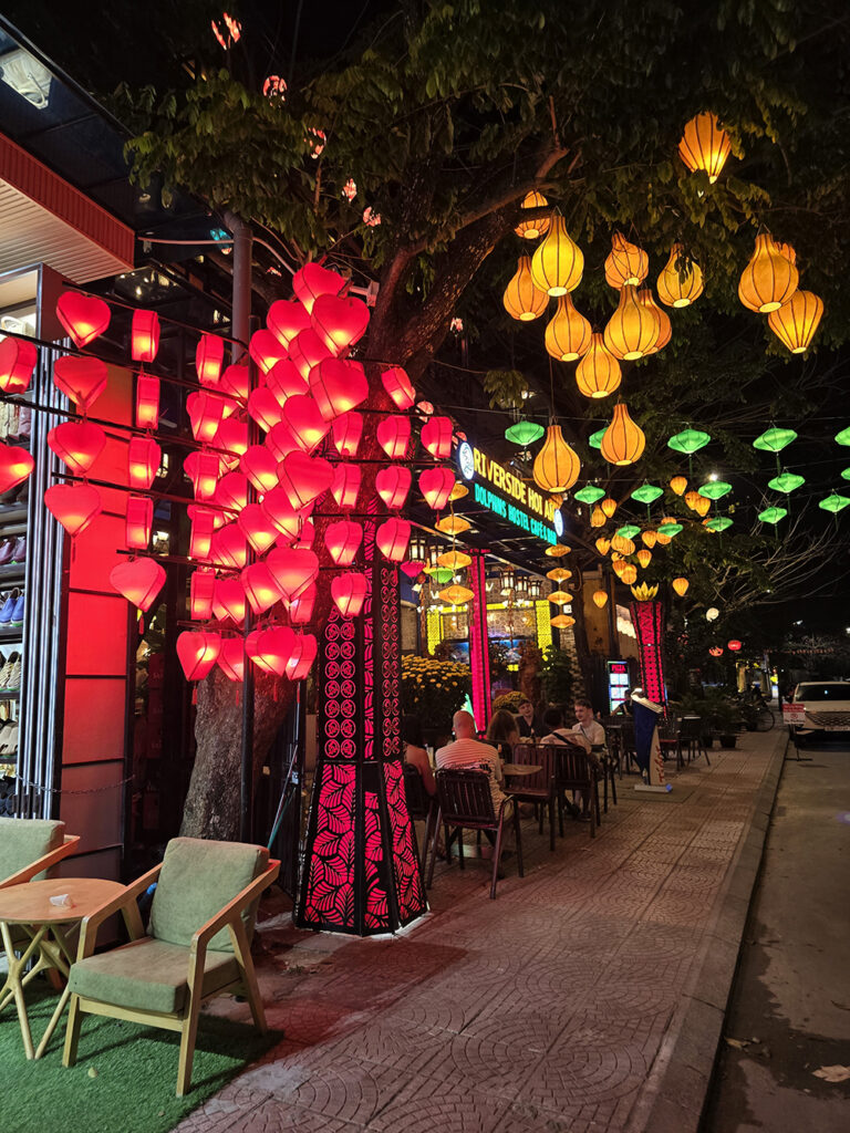 12 février : Taxi Grab pour Hoi An devenue extrêmement touristique. Balade au marché, dans la vieille ville, aux temples. Visite de l’intéressant musée sur les minorités ethniques du photographe Réhahn et soirée au night-market très animé. La ville est magnifique avec toutes ses lanternes et ses bateaux illuminés.