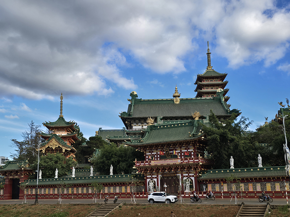 3 février : On trouve à la gare routière un minibus pour aller à Pleiku. Nous nous logeons dans un superbe Homestay et découvrons la ville à pieds, et particulièrement la belle pagode Minh Thanh.