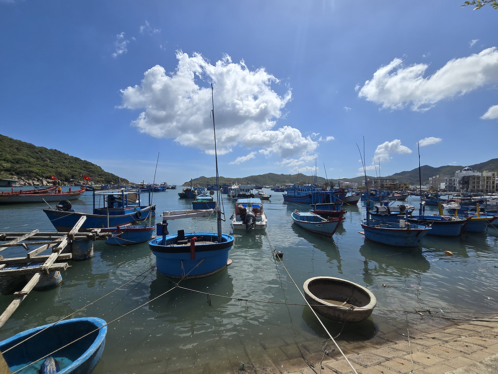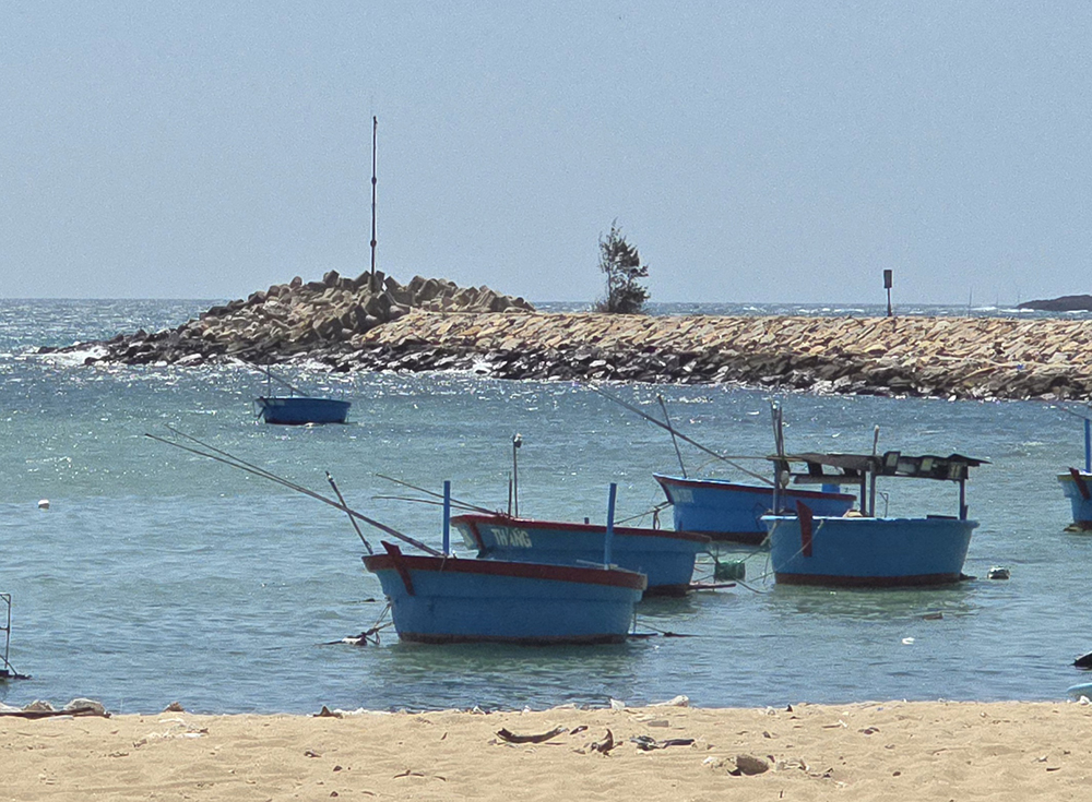 9 février : Une journée à l’est de Quy Nhon en scooter vers les petits ports tranquilles de la péninsule de Phuong Mai. Il y a beaucoup de vent. Arrêt au petit village de pêcheurs de Nohn Hai et une belle découverte du temple aux bouddhas géants. Une ballade au village de Nohn Ly aux airs de Santorin et encore une belle pagode à voir ! Une dernière escale au port de pêche où la mer est toujours aussi démontée avant de rentrer à Quy Nhon. Dîner dans la street-food.