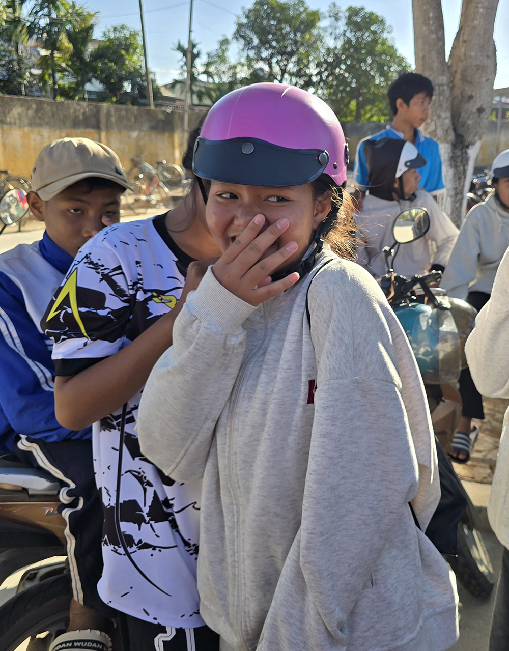 1er  février : Nous partons en scooter faire le tour du lac à la rencontre des habitants qui travaillent dans les rizières et des champs de caféiers en fleurs. Au passage on visite un village Ede traditionnel avec ses nombreuses sculptures en bois, à côté du rocher de l’éléphant. Au hasard des chemins nous sommes amenés à traverser une rivière sur un bac. En rentrant à Lien Son, nous nous arrêtons voir des jeunes qui se livrent à des compétitions sportives dans une école.