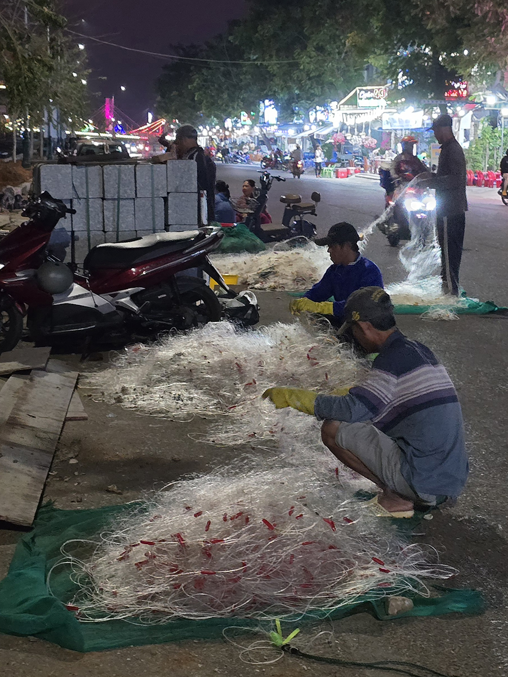 8 février : En scooter jusqu’à Sang Cau à 60km de Qut Nohn en longeant la côte sous les collines. Nous nous arrêtons dans de nombreux petits ports Bai Xep, Khu Vuc, Hoa An, Hoa Loi. Arrêt au port de Song Cau et retour pénible à la nuit.